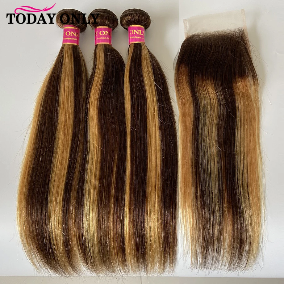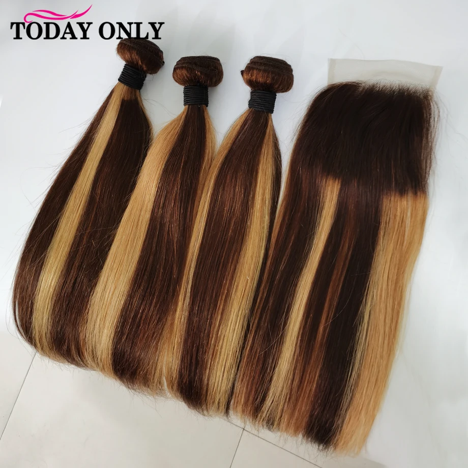 Выделите пучки волос с закрытиемЯркие пучки с застежкой прямыеP4/27 медовые светлые пучки с закрытиемКоричневый пучки волос с закрытиемВолосы Remy (с чешуйками в одном направлении), пучки волосПучки человеческих волос с закрытием