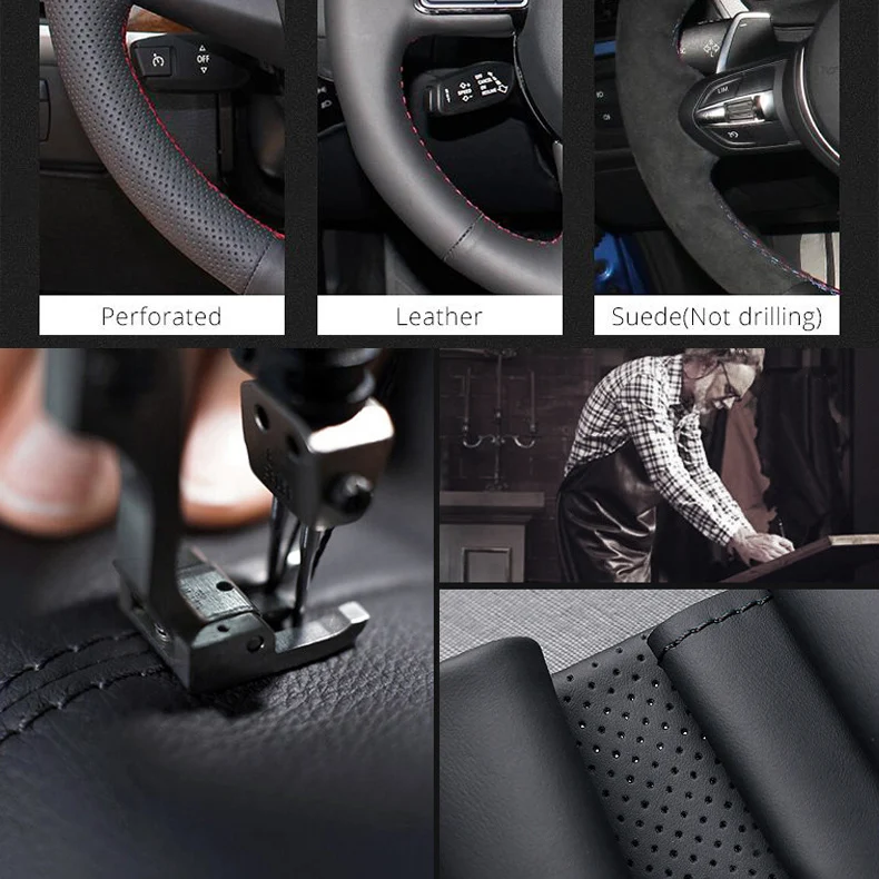 Кожаная оплетка рулевого колеса алькантары для Ford Focus Active Es...