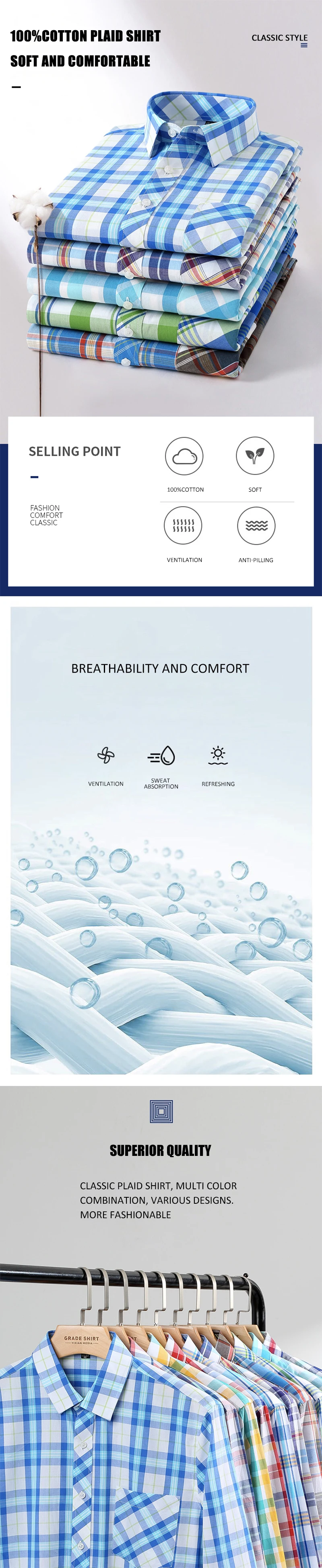Рубашка AOLIWEN мужская с длинным рукавом, 100% хлопок, Повседневная Удобная дышащая, в клетку, 2021