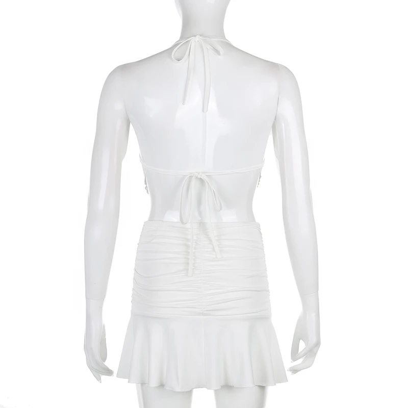 90s мини юбка Леди Мода Y2K летняя пляжная одежда белый аксессуар H...