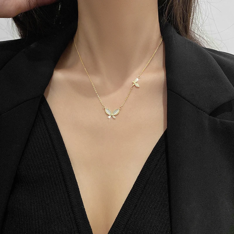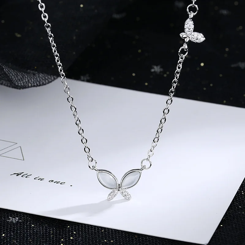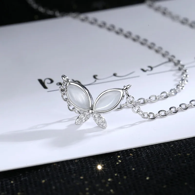 POPACC 925 Стерлинговое серебро опал камень бабочка кулон ожерелья для женщин цепь очаровательные ювелирные изделия вечерние НКИ свадебные подарки Лидер продаж