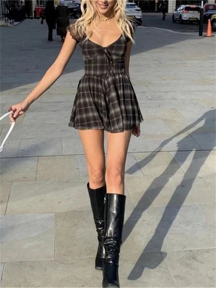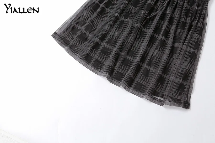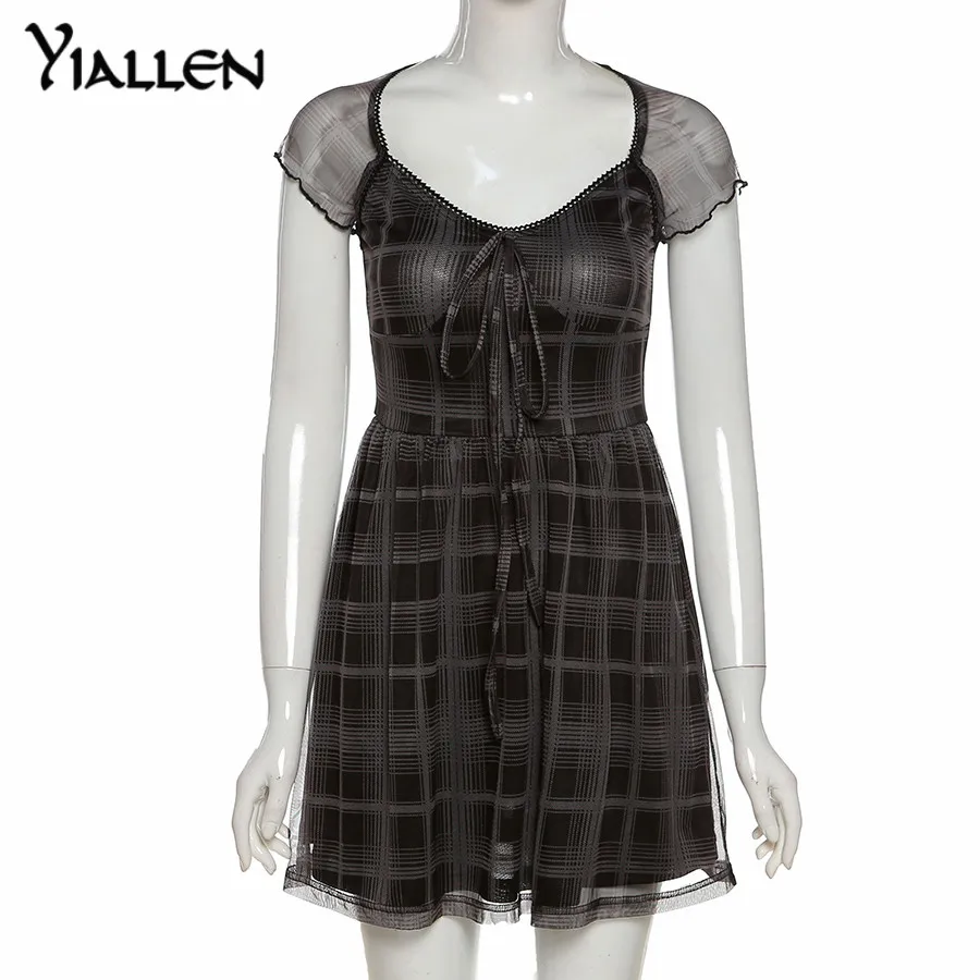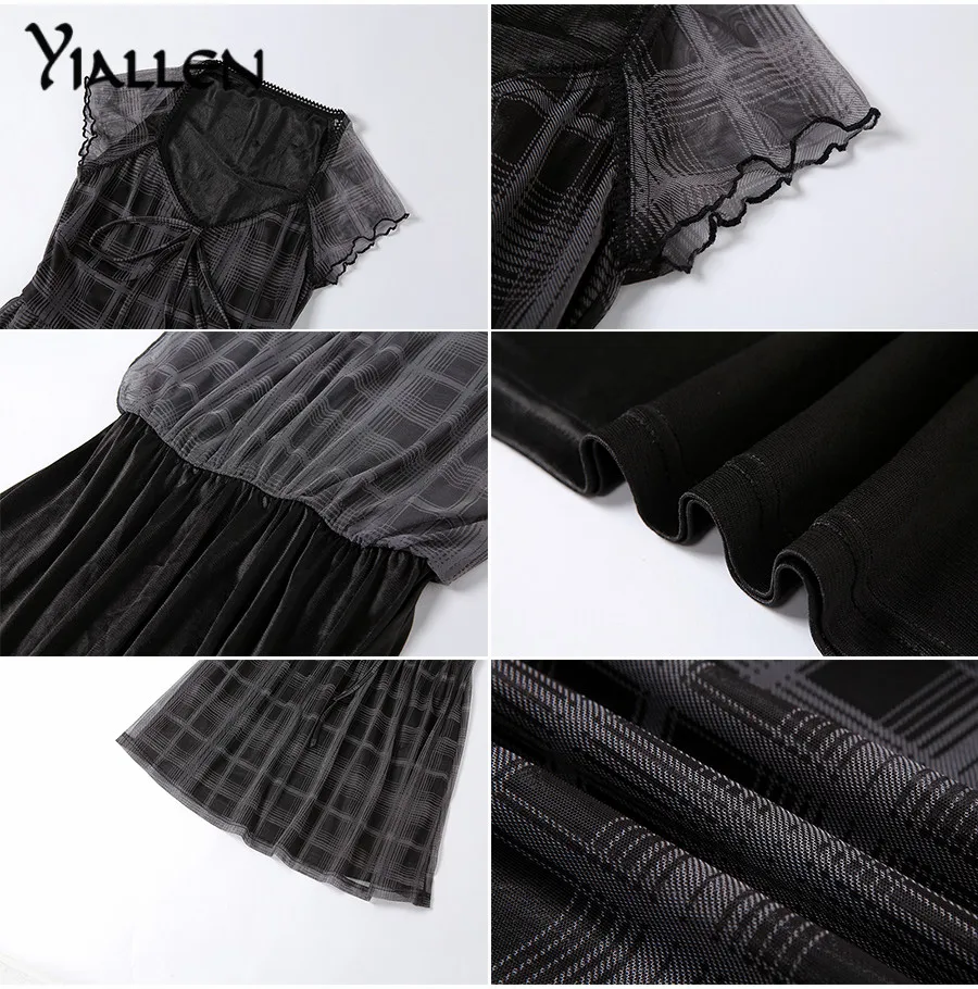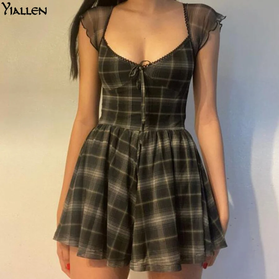 Женское платье в стиле Харадзюку Yiallen, черное клетчатое мини-платье трапециевидной формы с коротким рукавом, для вечеринок, на лето, 2021