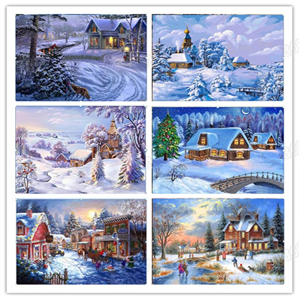 Зимняя живописная алмазная живопись Зимний Рождественский Снеговик ...