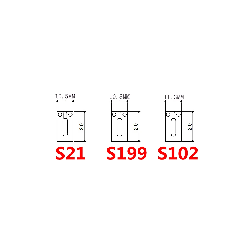 Спецификация:Сталь, S21 (10,5 мм * 20 мм) ; S199 (10,8 мм * 20 мм) ; S102 (11,3 мм * 20 мм)