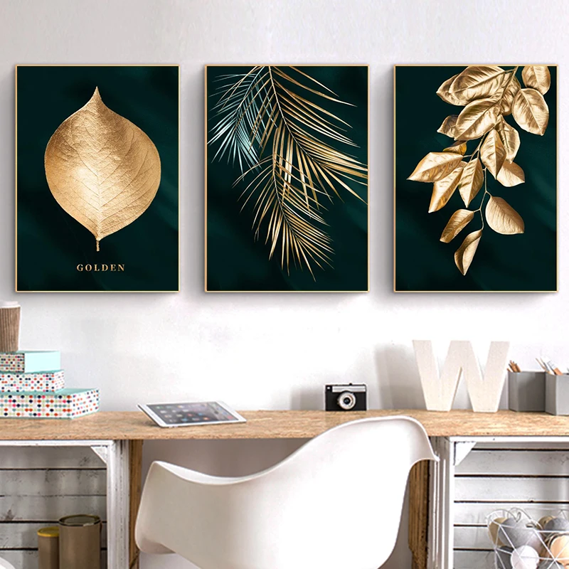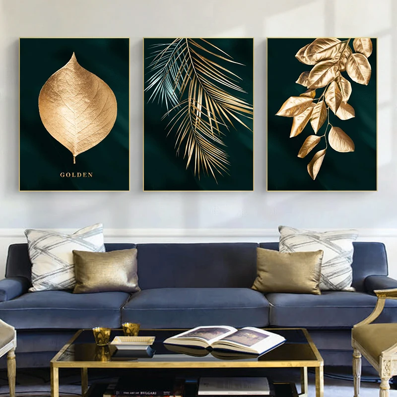 Скандинавские искусственные постеры с изображением золотых листьев и растений, настенные художественные картины для гостиной, украшение для дома