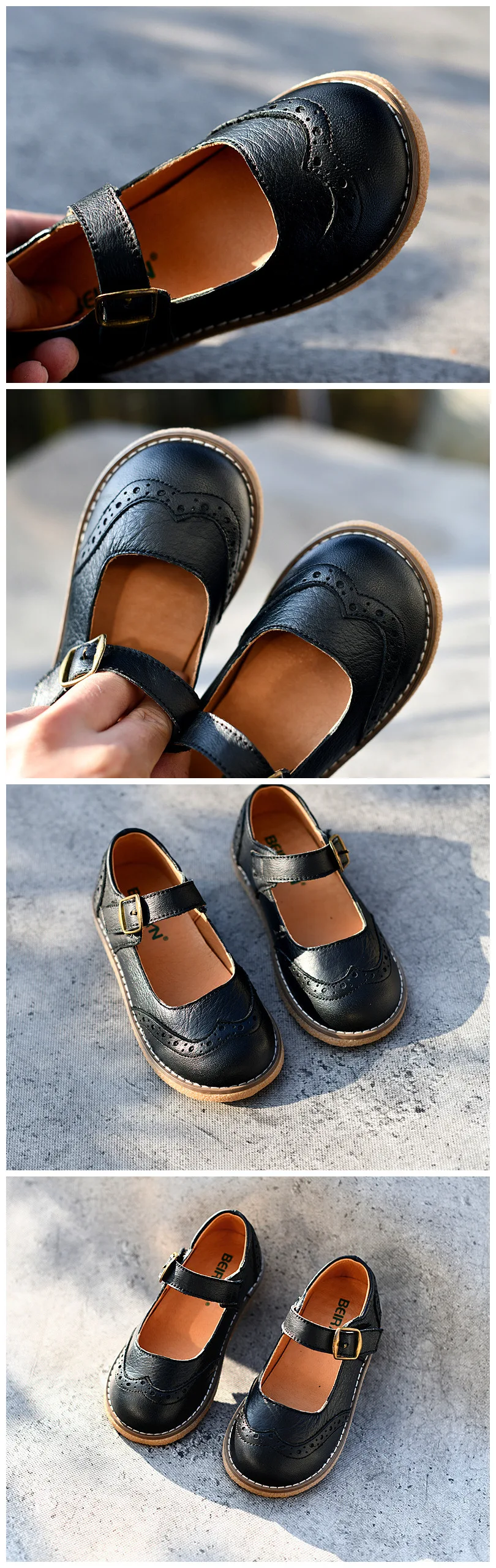 Туфли детские из натуральной кожи, повседневные сандалии, черные модельные туфли для школьниц, вечеринок, лоферы для девочек, 2021