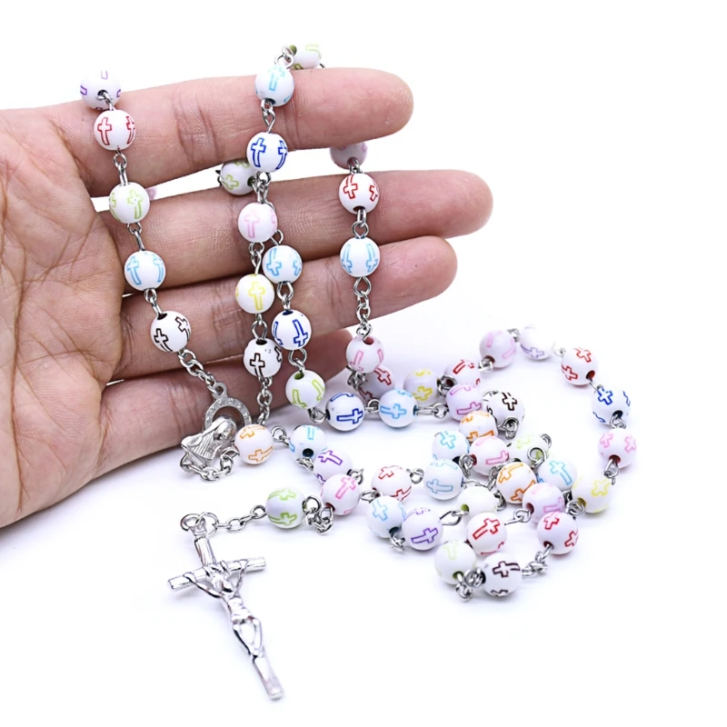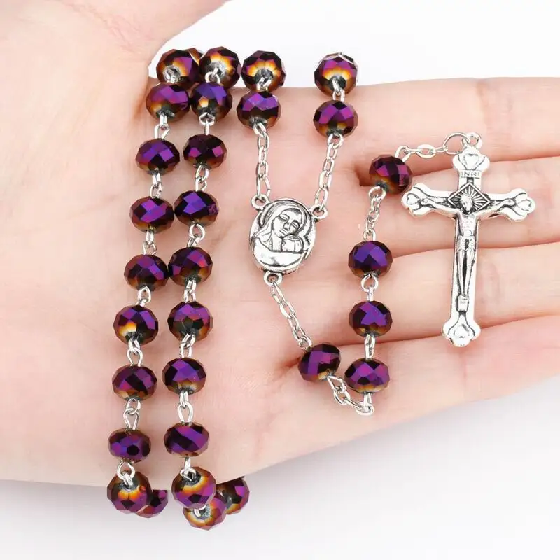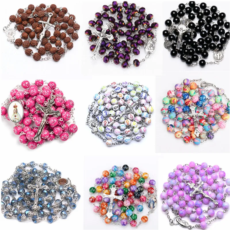 Новое женское ожерелье ручной работы, подвеска в виде креста, цепочки из стекла для христианских католических богородиц, бусины, ювелирные изделия, подарки для унисекс