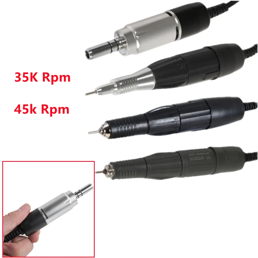 Сертификация CE Макс: 45000 об/мин Размер наконечника: 2,35 мм Входное напряжение: 0-30 в Портативный дизайн (разъемы к вашему блоку управления питанием для полировки стоматологической лаборатории) Установлены специальные шариковые подшипники для супер высокой скорости (не нужно добавлять масло) 0-45000 об/мин