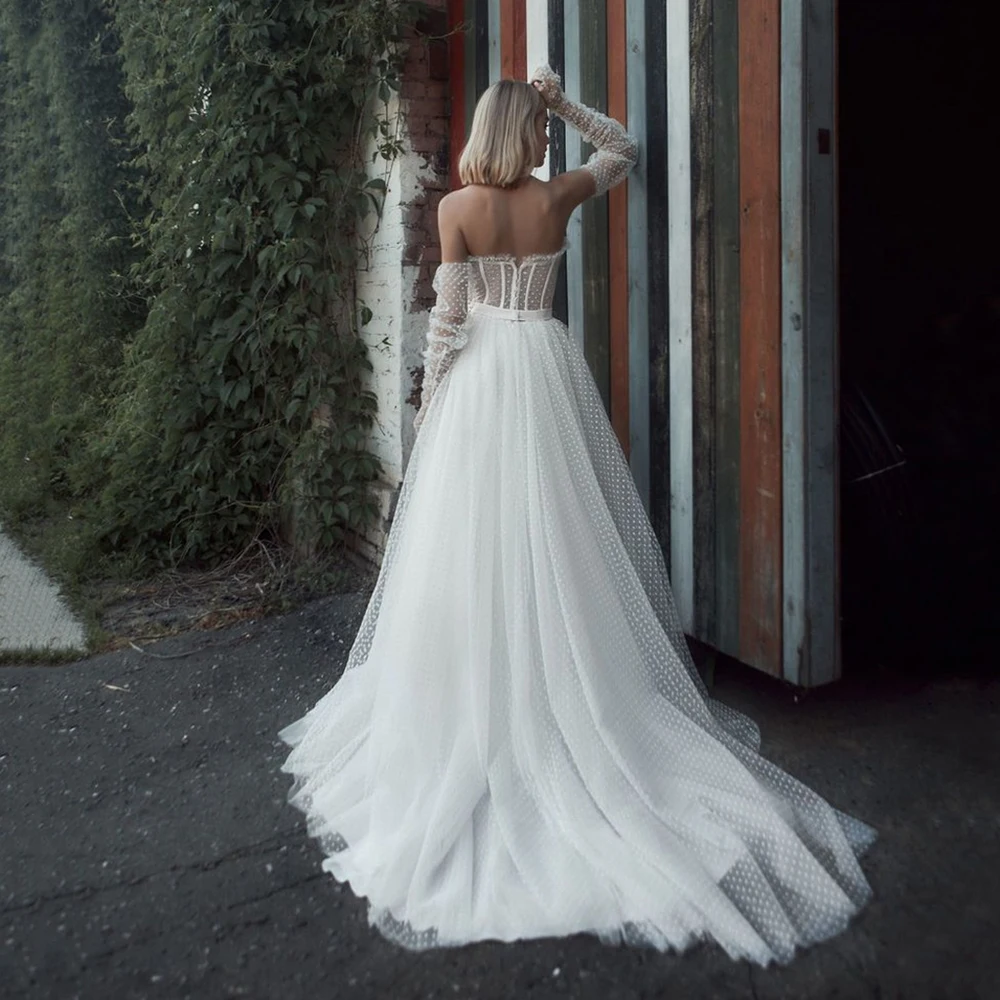 UZN свадебное платье с корсетом милое ТРАПЕЦИЕВИДНОЕ свадебное платье в горошек элегантное Пышное Свадебные платья из фатина с поясом