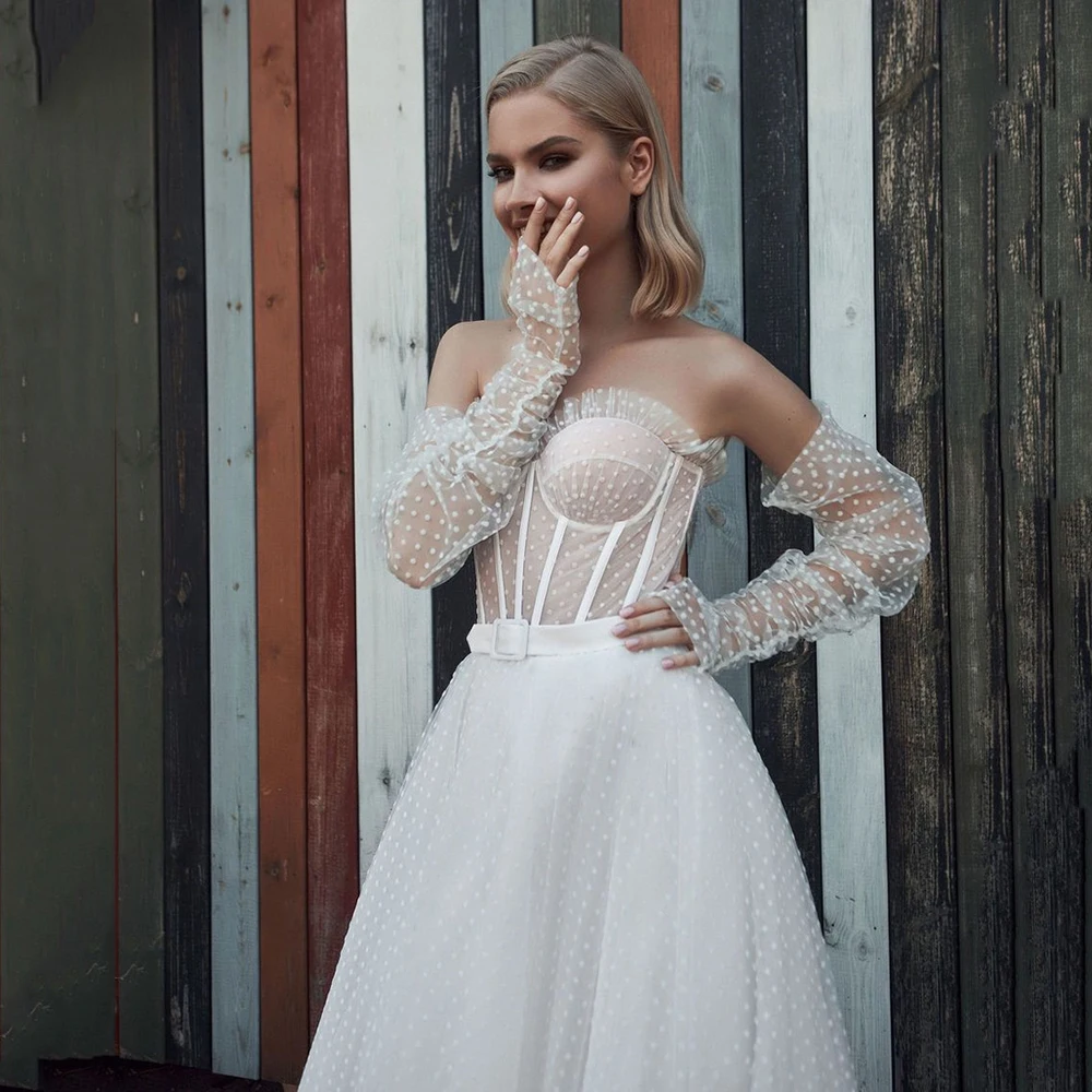 UZN свадебное платье с корсетом Милая трапециевидной формы в горошек Чистая Свадебное платье элегантные Пышные свадебные платья из фатина с поясом