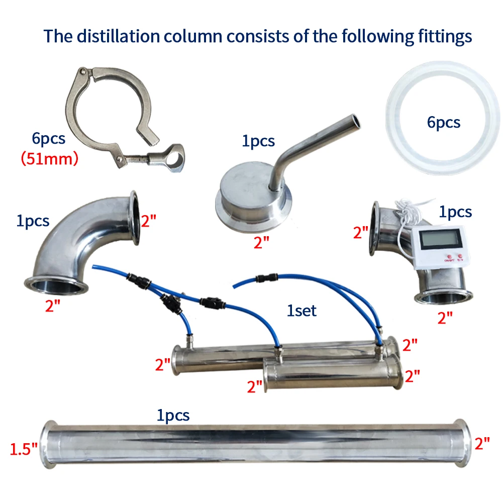Русская санитарная сталь 304 2 дюйма (51 мм) OD64mm башня рефлюкса, дистиллятор, колонна для дистилляции с зажимом дна 1,5"