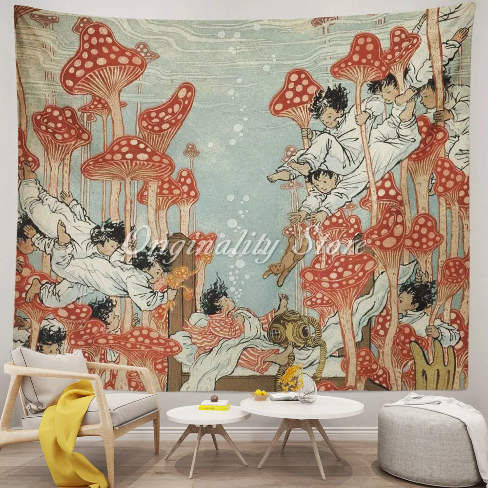 Милый детский гобелен с изображением хиппи, Красного гриба в воде
