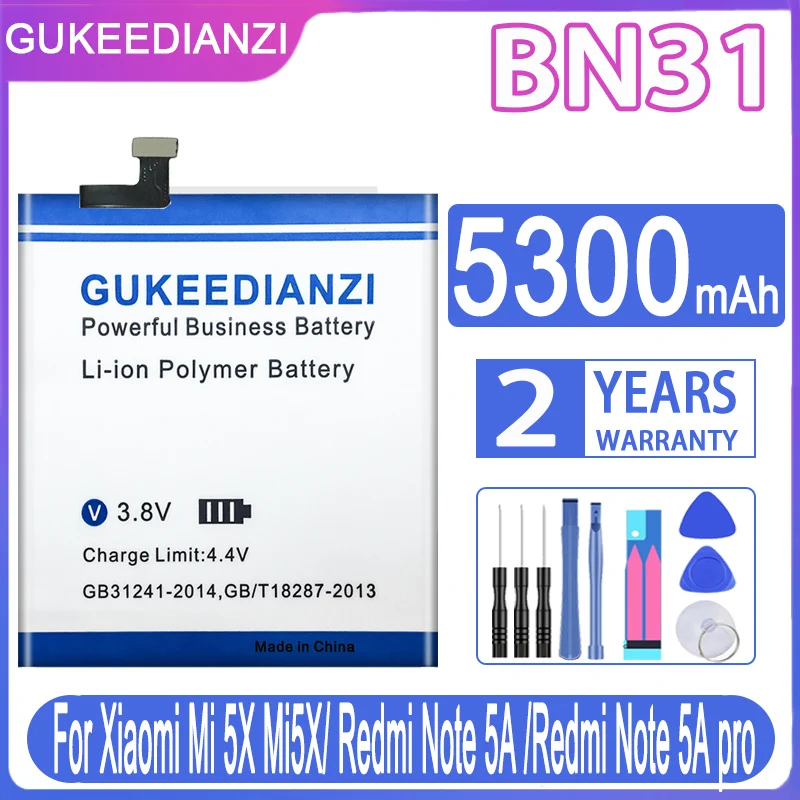 GUKEEDIANZI аккумулятор высокой емкости BN31 5300 мАч для Xiaomi Mi 5X Mi5X Redmi Note 5A / Pro Mi A1 Redmi Y1 Lite S2