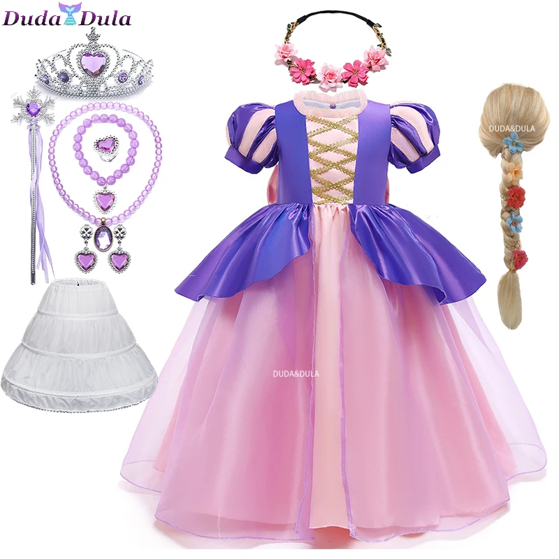 2022 девушка-Рапунцель парик + платье принцессы Хэллоуин Детская Спящая красавица Косплей София Тюлевое бальное платье-пачка детская одежда