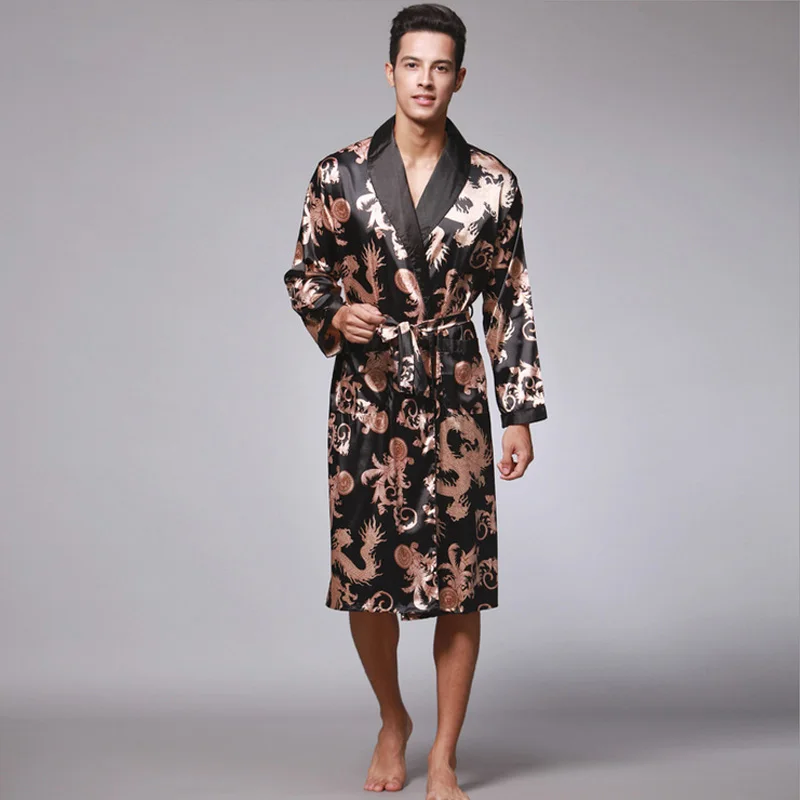 Халат-кимоно мужской с принтом, атласное шелковое ночная рубашка, П...