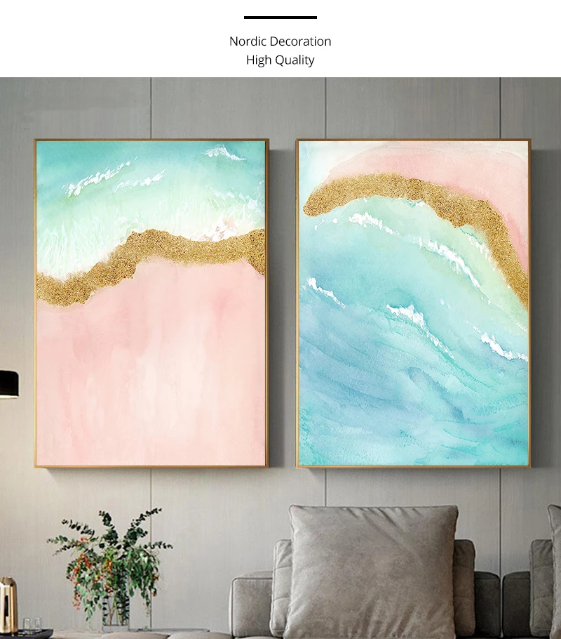 Абстрактный прибрежных розовый пляжный пейзажные волны плакат океан морская животных Печать холст Картина Home Decor Wall Art фотографии холст картины Nordic украшения