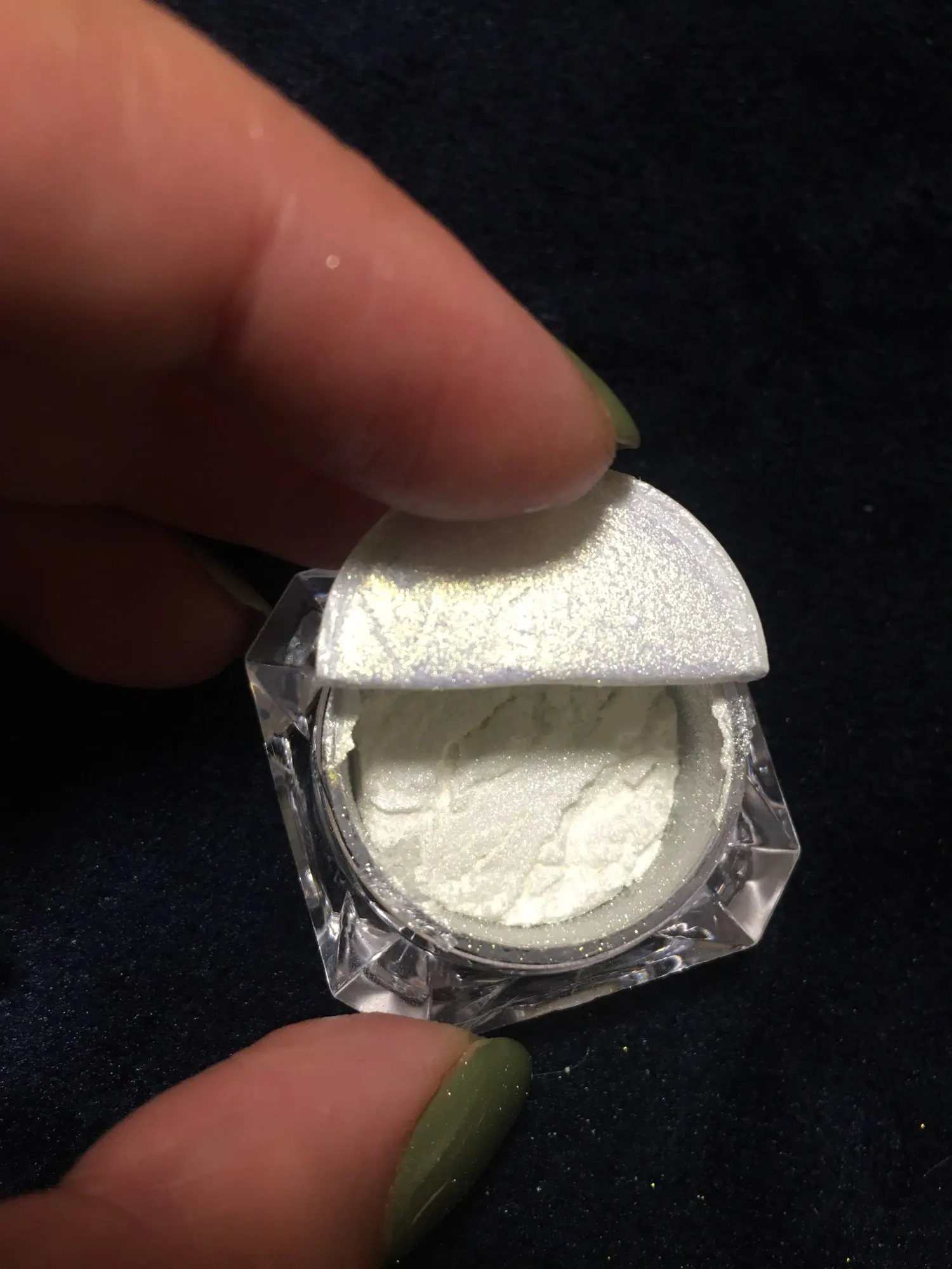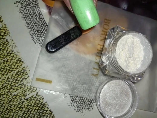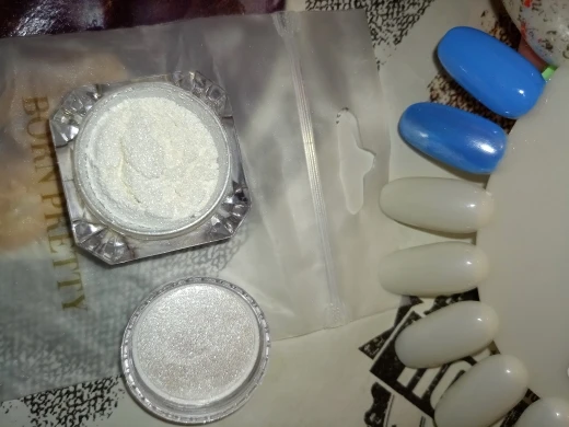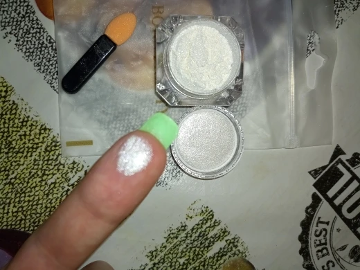 31.01/02.09. Пришла в сборной посылке. Скажу так ,лично мне она не зашла. Обычная белая втирка с мелким шимером. Придает блеск не большой. На синем и зелёном цвете не понравилось как смотрится . Возможно на нюдовых оттенках или светлых тонах будет смотреться иначе. В упаковке ее много,хватит надолго. Брала за 19 центов. Как раз ее цена) На вкус и цвет в общем. Покупать или нет ,решать вам.