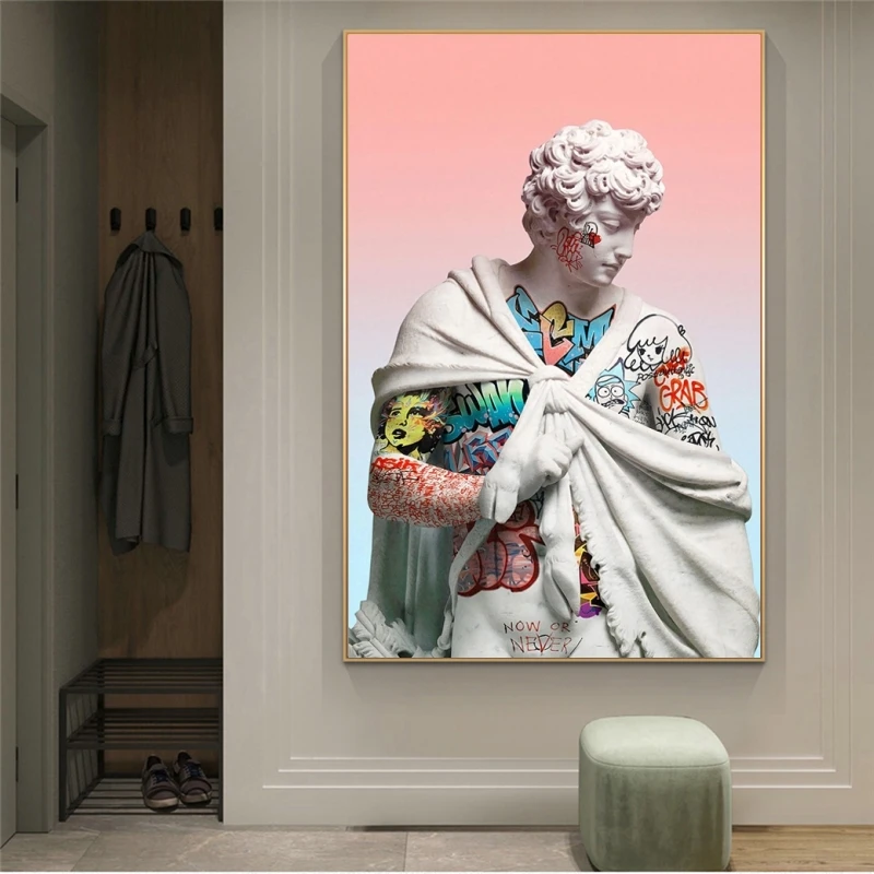 Граффити искусство Давида Портрет Искусство холст живопись плакаты и принты Куадрос стена искусство для гостиной домашний Декор (без рамки)