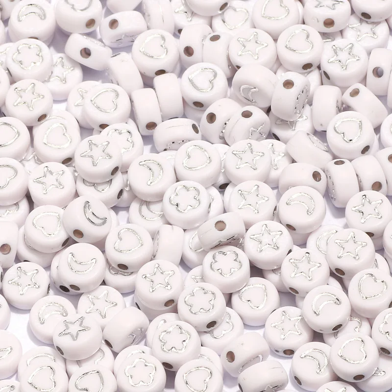 Бело-посеребренный антенный буквы круглые акриловые бусины с плоски...