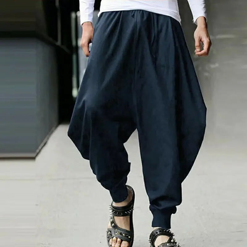 Универсальные модные мужские хиппи штаны-шаровары для йоги из хлопка и льна Свободные мешковатые брюки на шнуровке