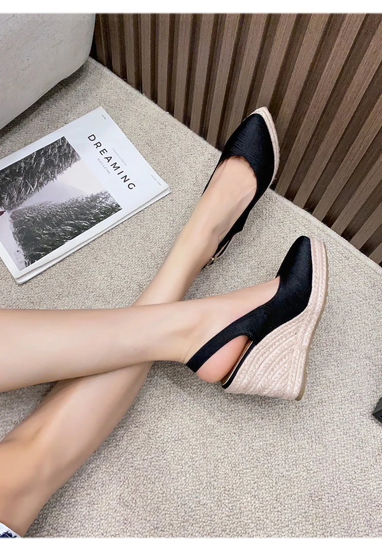 Французские эспадрильи; Туфли на высоком каблуке; Женские сандалии на танкетке; Новинка 2021 года; Женская обувь с острым носком и бантом; Сезон осень