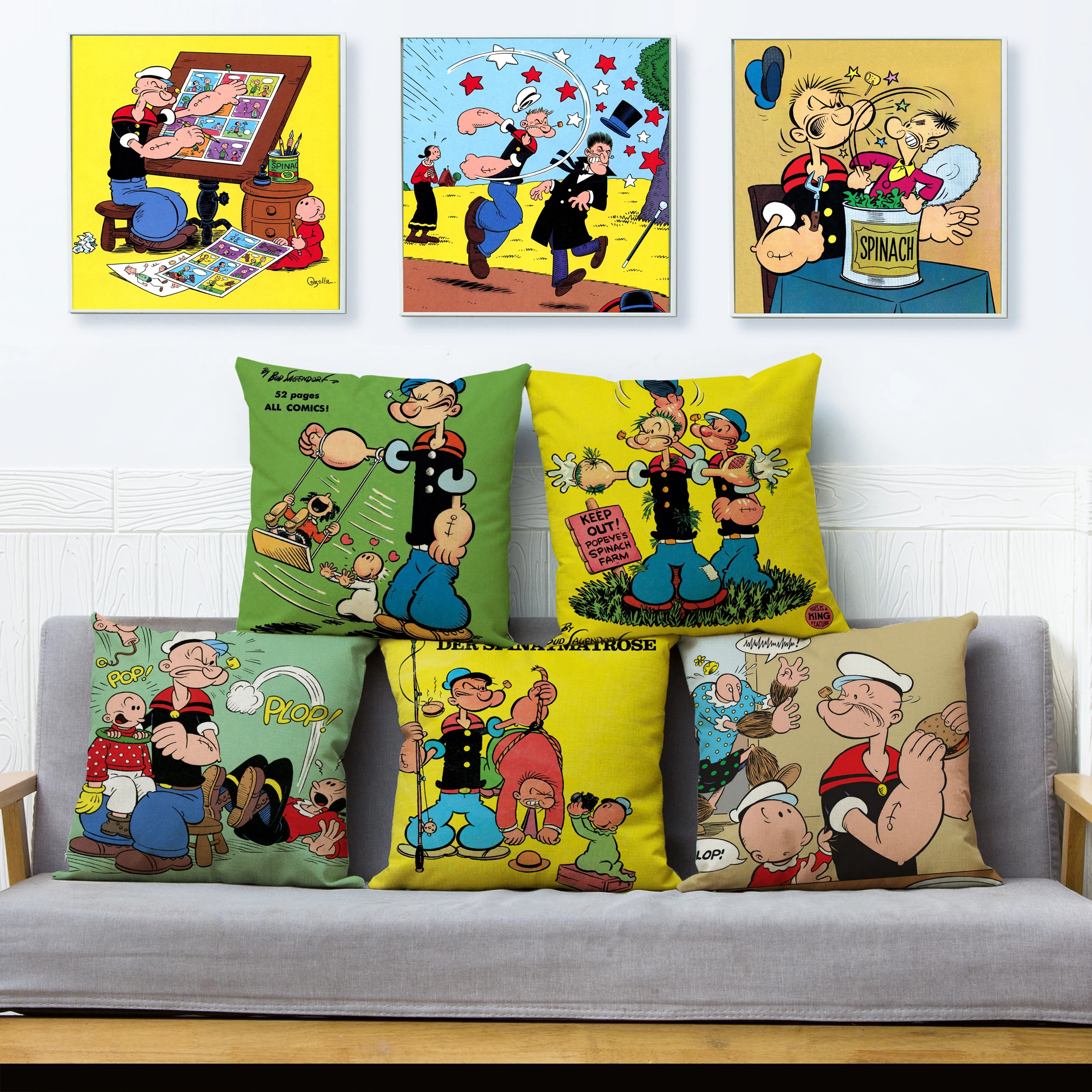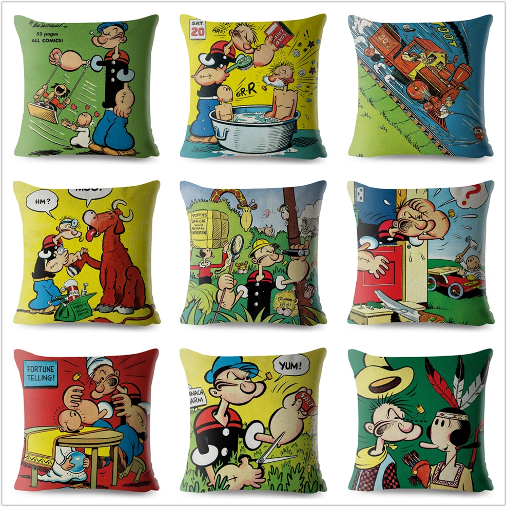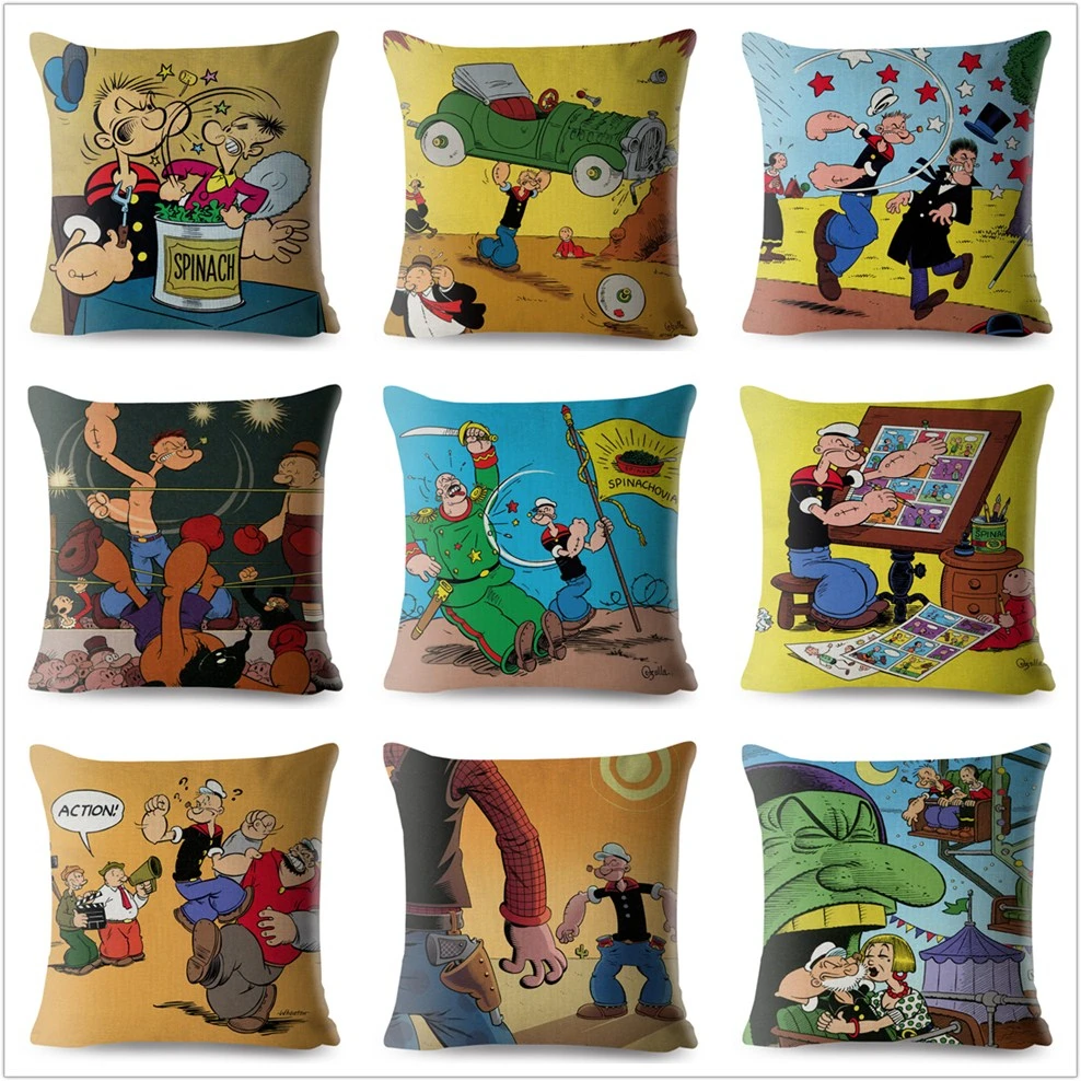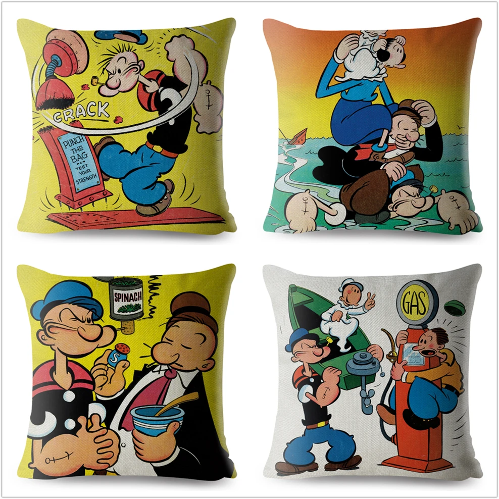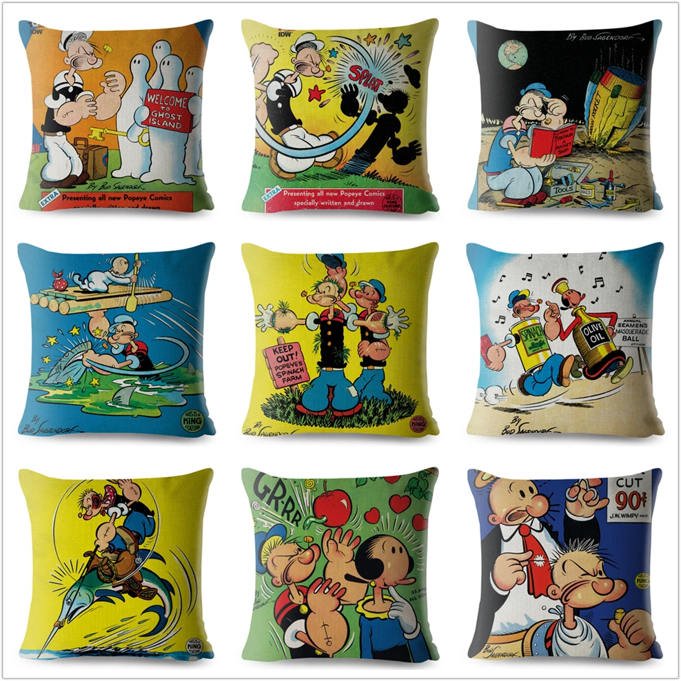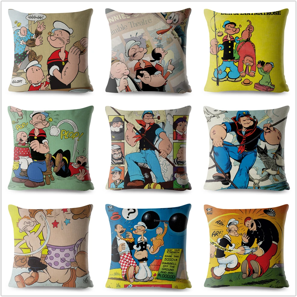 Классический мультяшный сильный матрос, орнамент, наволочка, детский подарок, льняные подушки, чехлы для дивана, домашний декор