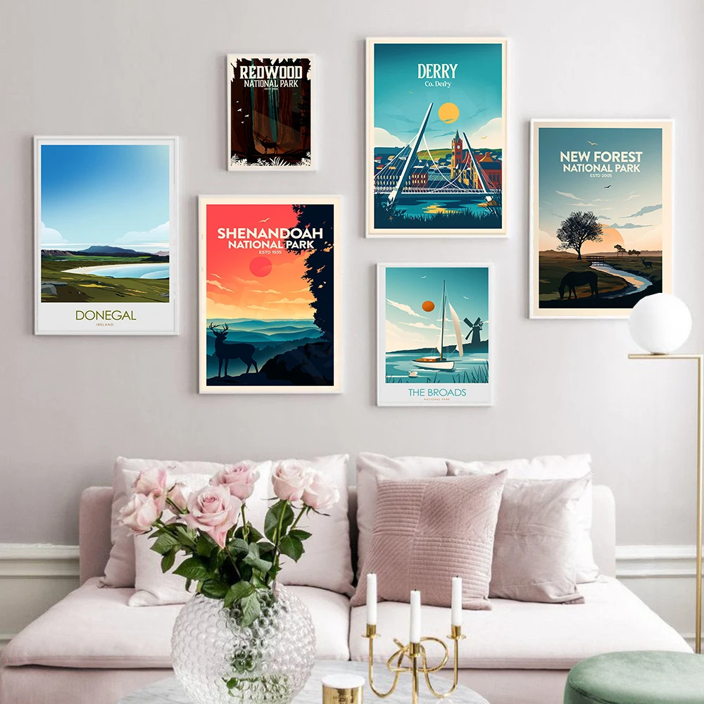 Скандинавский стиль пейзаж для Путешествий Холст настенный плакат с...