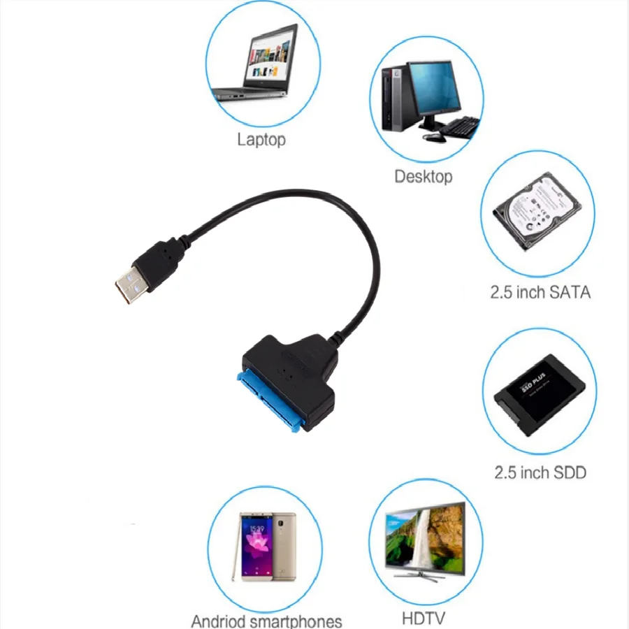 Кабель SATA с USB на USB 2,0, адаптер, компьютерные кабели, разъемы USB SATA, адаптер, кабель с поддержкой 2,5 дюйма Ssd Hdd, жесткий кабель