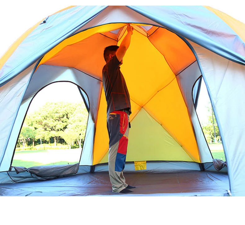 Уличная туристическая палатка, двухслойная 3-дверная шестиугольная Юрта, туристическая уличная палатка для путешествий, кемпинга, палатка для альпинизм для семьи 5-10 человек