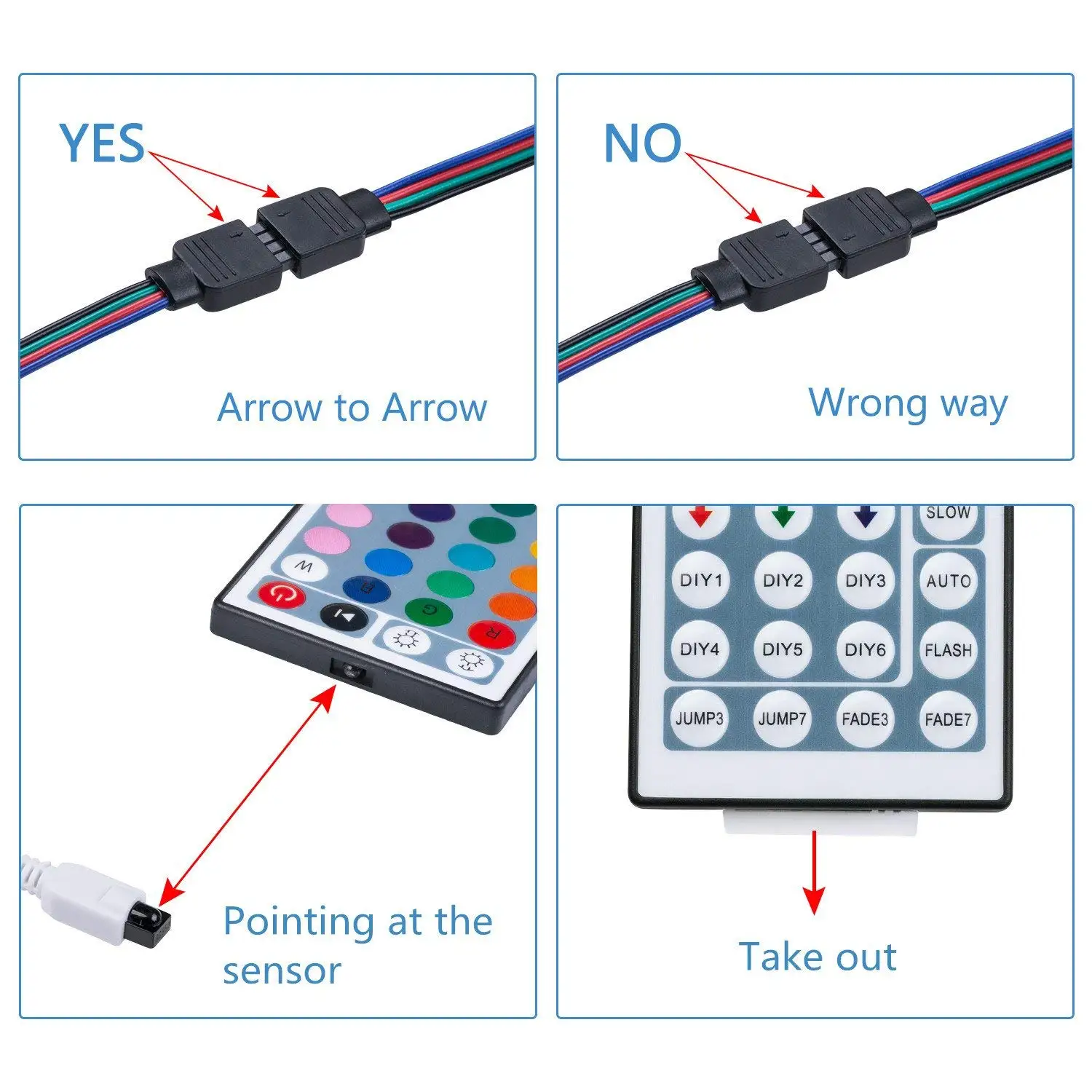 Посылка включает в себя: 1 рулон 5 м/10 м светодиодный светильник пропилен-каучука прокладки с 44-клавишный пульт пульта дистанционного управления