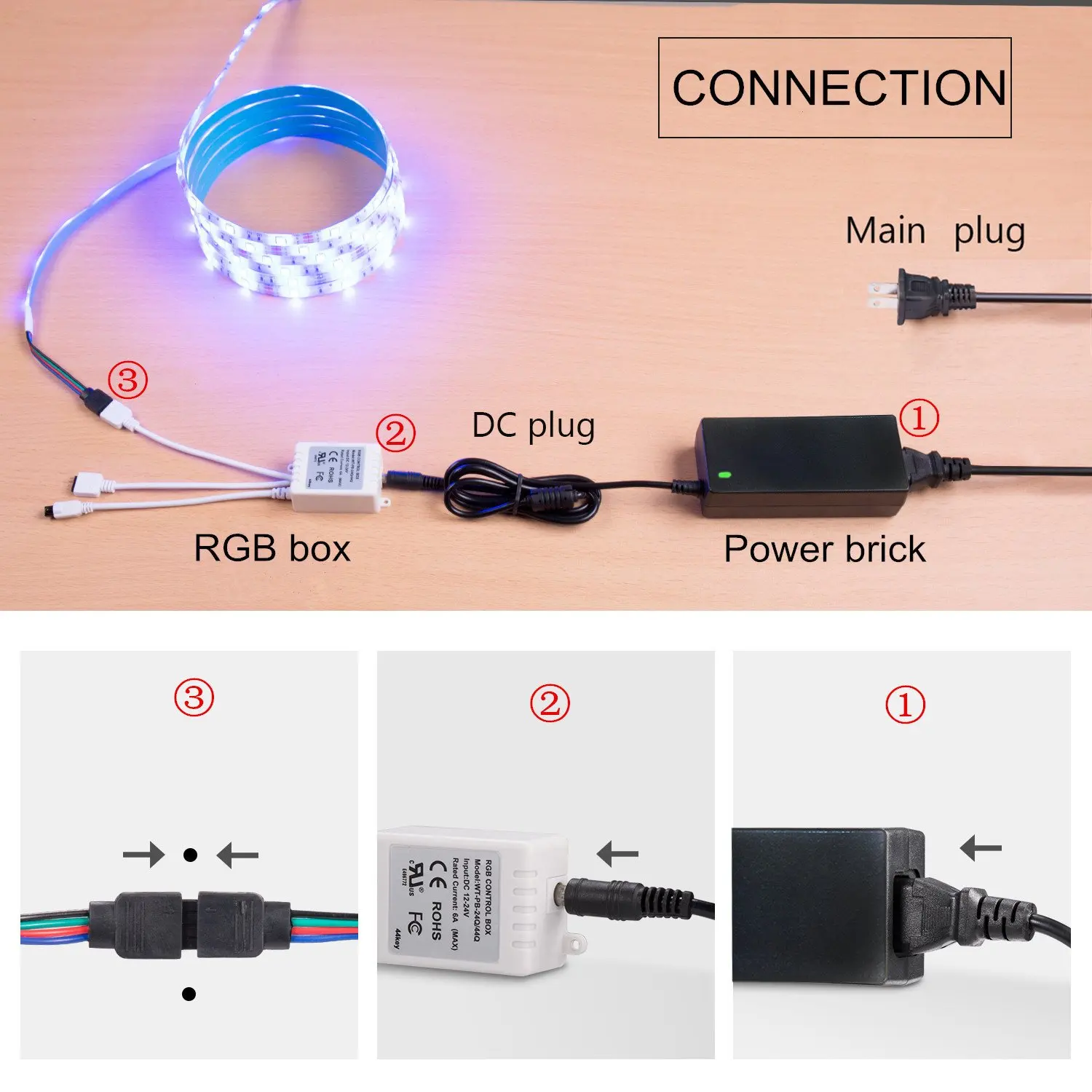 Входное напряжение: 12 В постоянного тока Степень защиты: водонепроницаемый/не водонепроницаемый, как вы выбираете Размер: 5 м/10 м 5 м = 16,4 фута 10 м = 32,8 футов Питание пульта дистанционного управления: аккумулятор CR2025 (не входит в комплект)