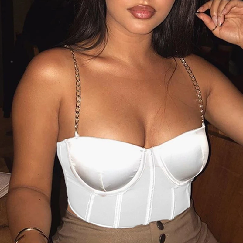 Женская Винтажная Майка с металлической цепочвечерние, облегающий топ без рукавов в уличном стиле