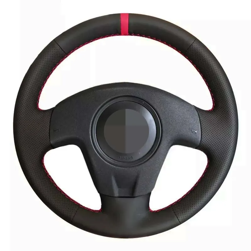 Чехол рулевого колеса автомобиля мягкая сшитая вручную красная маркерная черная искусственная кожа для Seat Ibiza 2004 2006