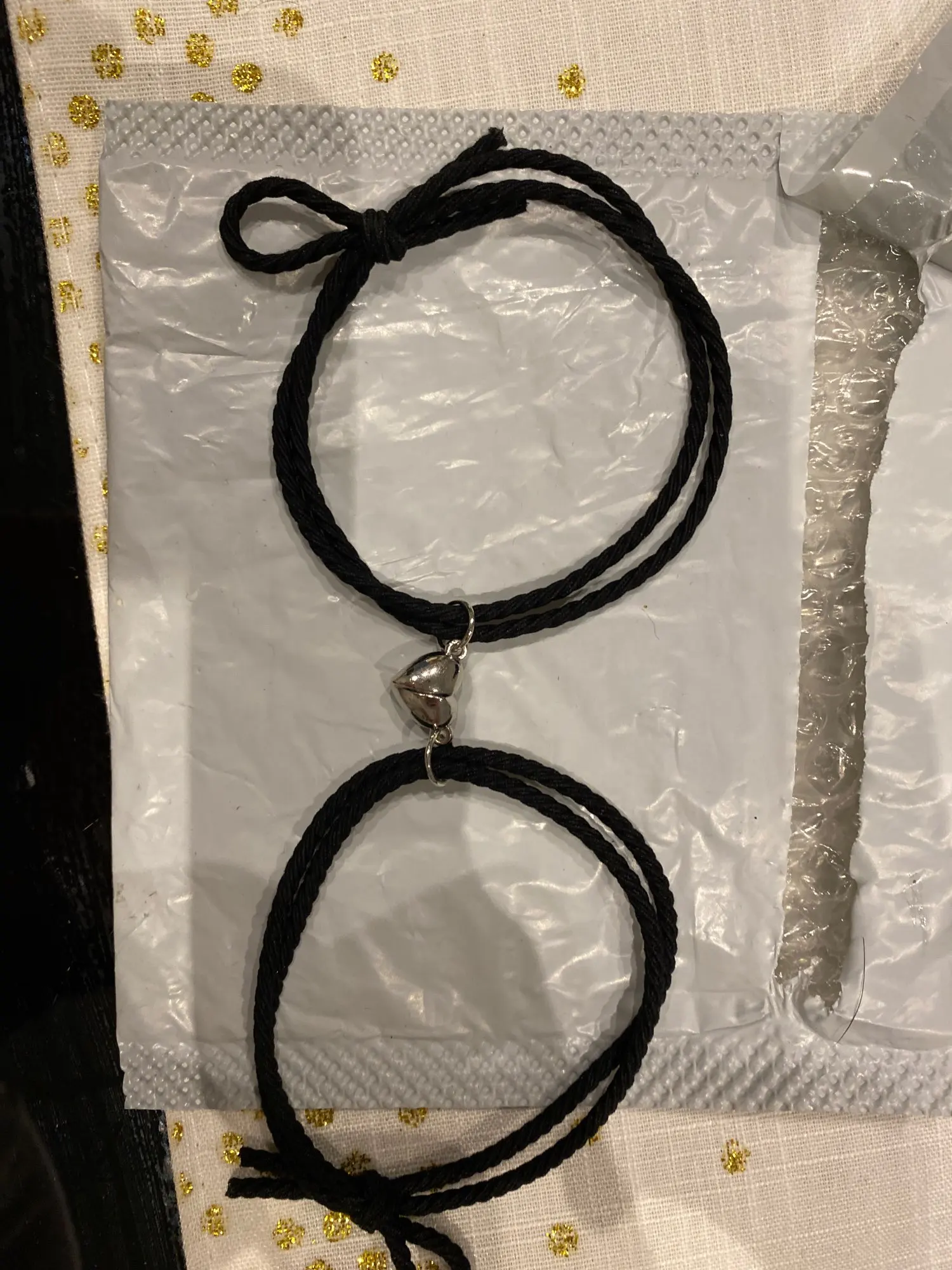 Очень хороший материал браслета и магнитов. Действительно доволен. Доставка посылки не заняла более двух недель, довольно доволен покупкой. Я рекомендую покупать их, чтобы сделать небольшую деталь с парой или/или другом, которая имеет большую ценность.