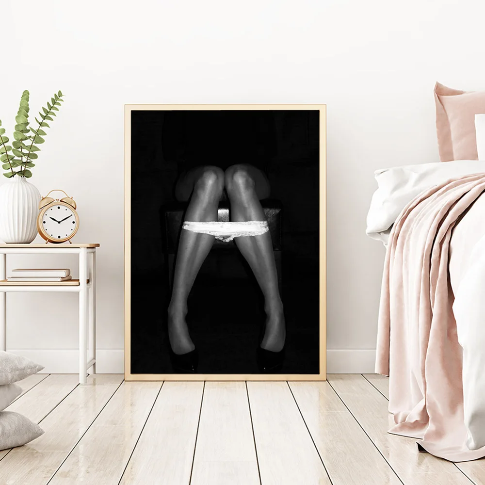Постер сексуальной девушки на туалете, черно-белая женская фотография, холст, живопись, настенные картины для гостиной, домашний декор