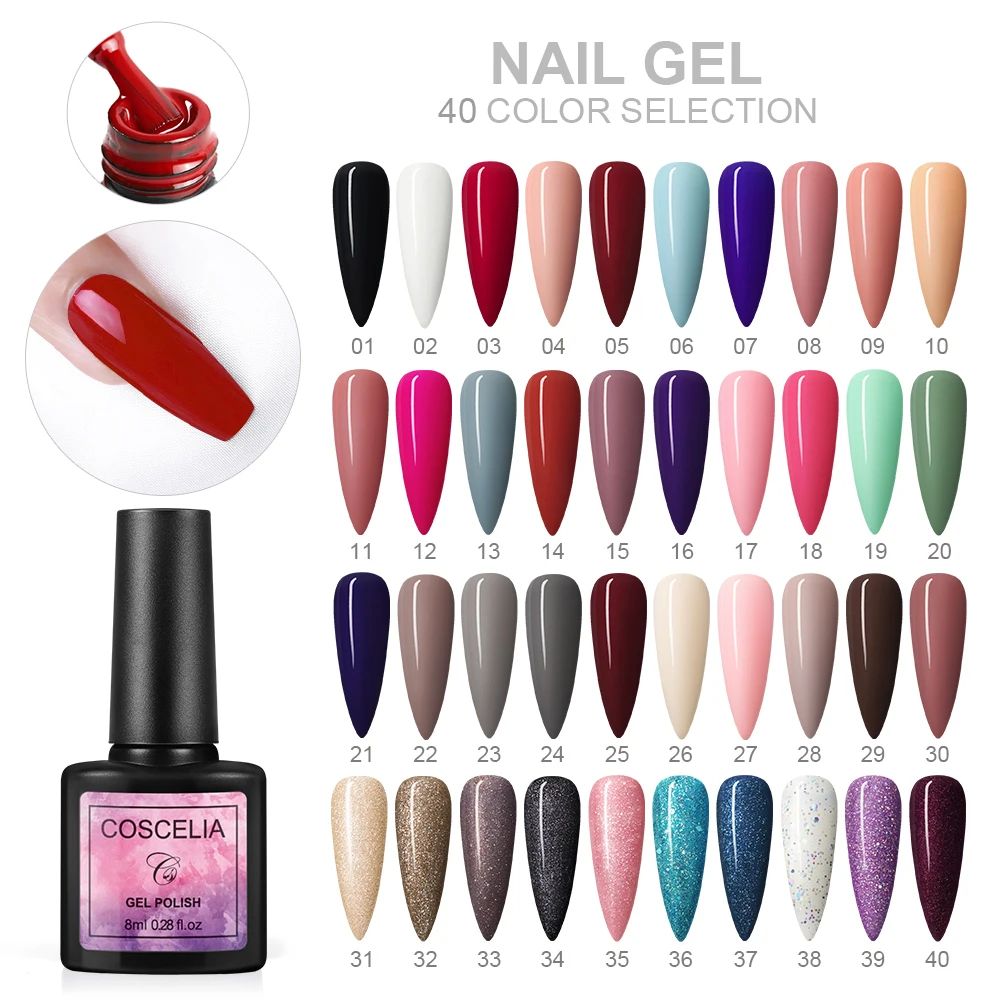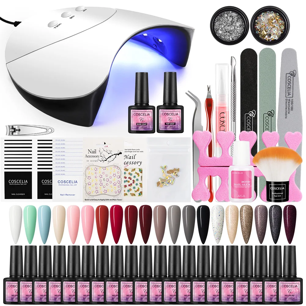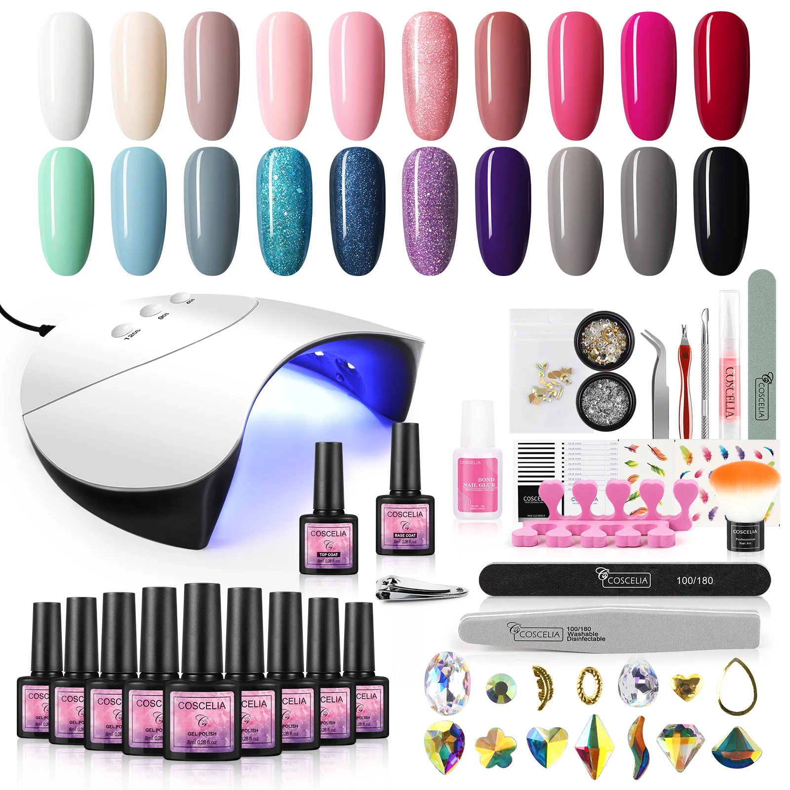 Лампа УФ светодиодный COSCELIA набор гель-лаков для ногтей для маникюра с электрическим маникюрным основанием, верхнее покрытие, инструменты для украшения для ногтей