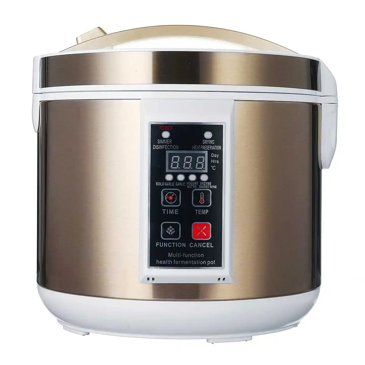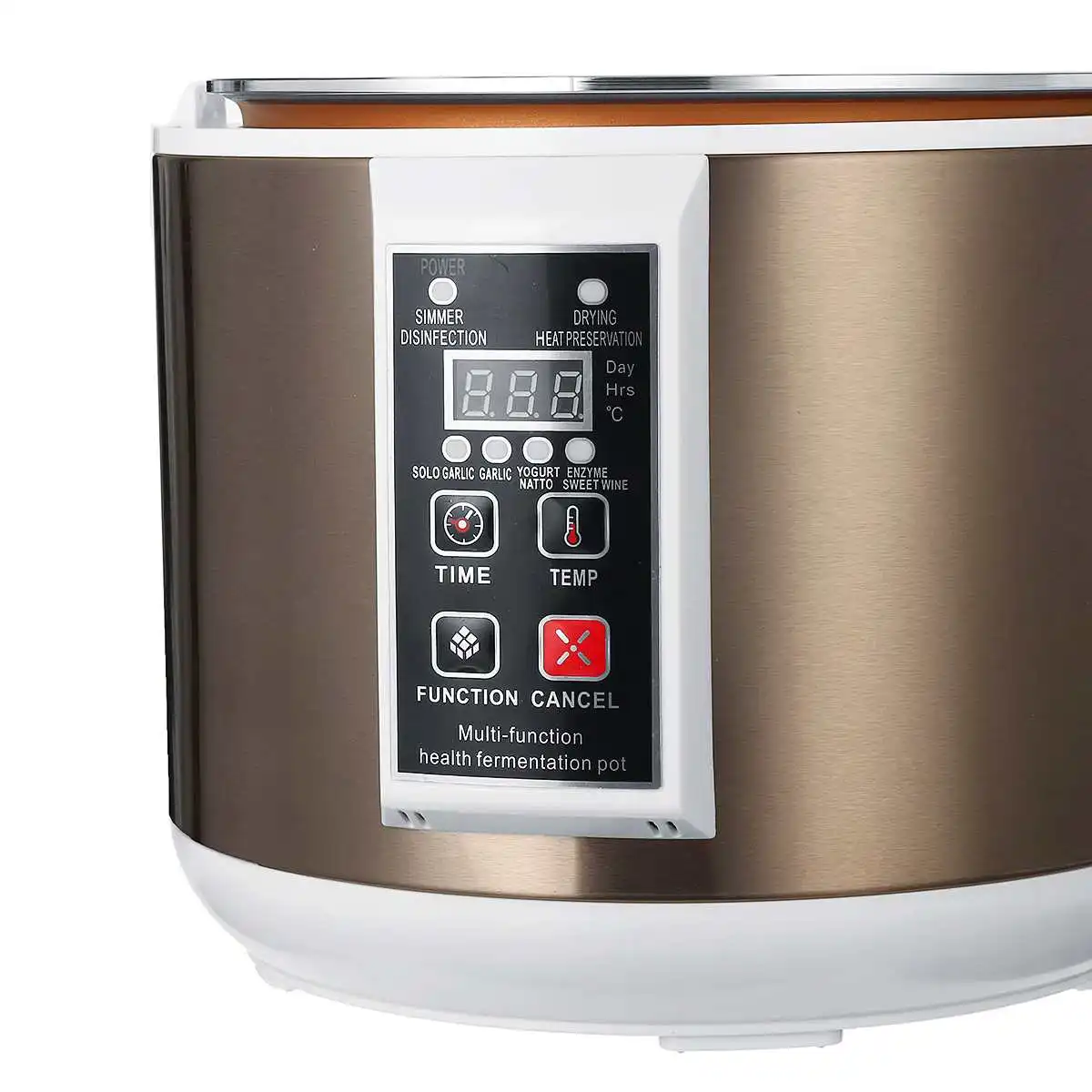 Особенность:1. Многофункциональный. Для приготовления сольного чеснока, чеснока, йогурта, натто, фермента, шведского вина и кипящей дезинфекции, сушки сохранения тепла.2. Можно выбрать режим брожения и 6-12 дней.3. Вы можете ферментировать около 3-4 кг чеснока. И влажный черный чеснок можно сушить для усиления эффекта брожения после брожения.4. Трехслойный нержавеющий держатель для большой емкости 6 л.5. Утолщенная внутренняя кастрюля для равномерного нагрева.6. Независимая ручка, простая в использовании.7. Используется верхний, средний и нижний всенаправленные трехмерные методы нагрева. Верхняя, Нижняя и полная окружность нагреваются, а внутренняя температура равномерная. Этот продукт имеет интеллектуальную Полностью Автоматическую конструкцию. Не нужно добавлять воду или наливать воду во время использования. После использования на дне вкладыша нет остаточных сточных вод, что является чистым и гигиеничным.8. Благодаря функции памяти при отключении питания мы рекомендуем не отрывать, не открывать крышку и не отменять ее как можно дольше в процессе ферментации.9. После удаления Черного Чеснока из ферментации его необходимо окислить в тени, чтобы он высохл около 5 дней, и он станет сладким. В противном случае сладости недостаточно.