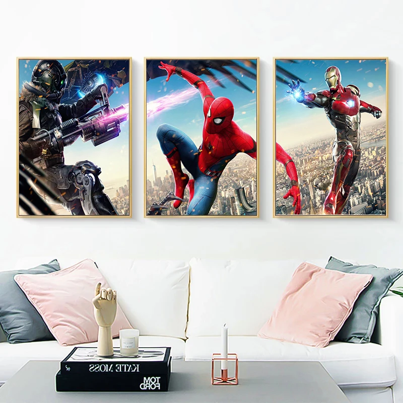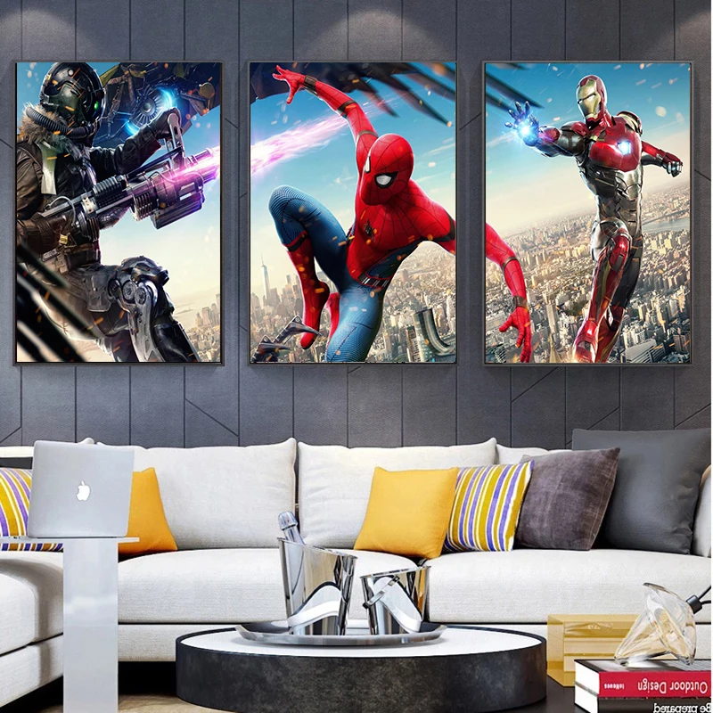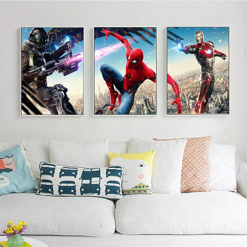 Постер Marvel, принт супергероев, Картина на холсте, Человек-паук, Железный человек, Куадрос, настенные картины и принты для мальчиков, спальня, домашний декор