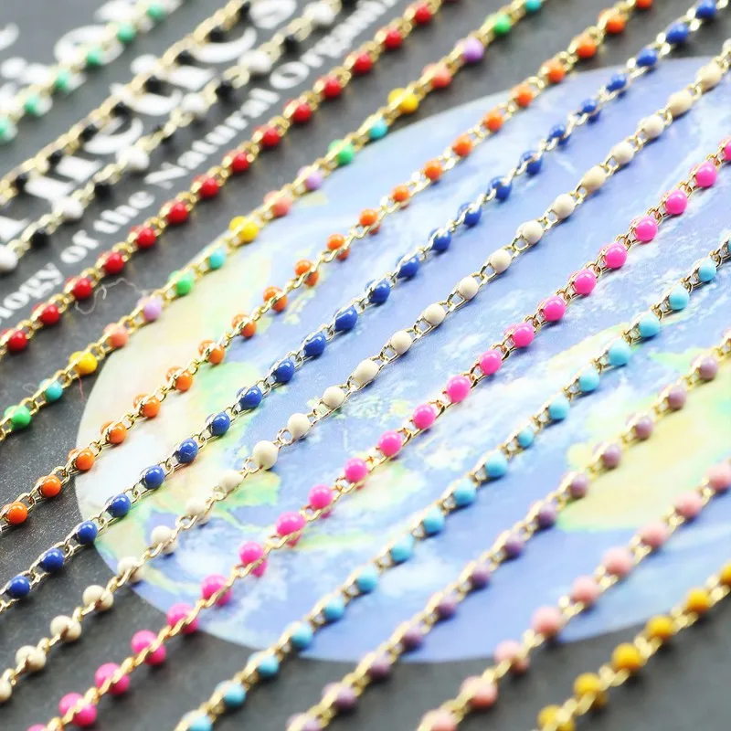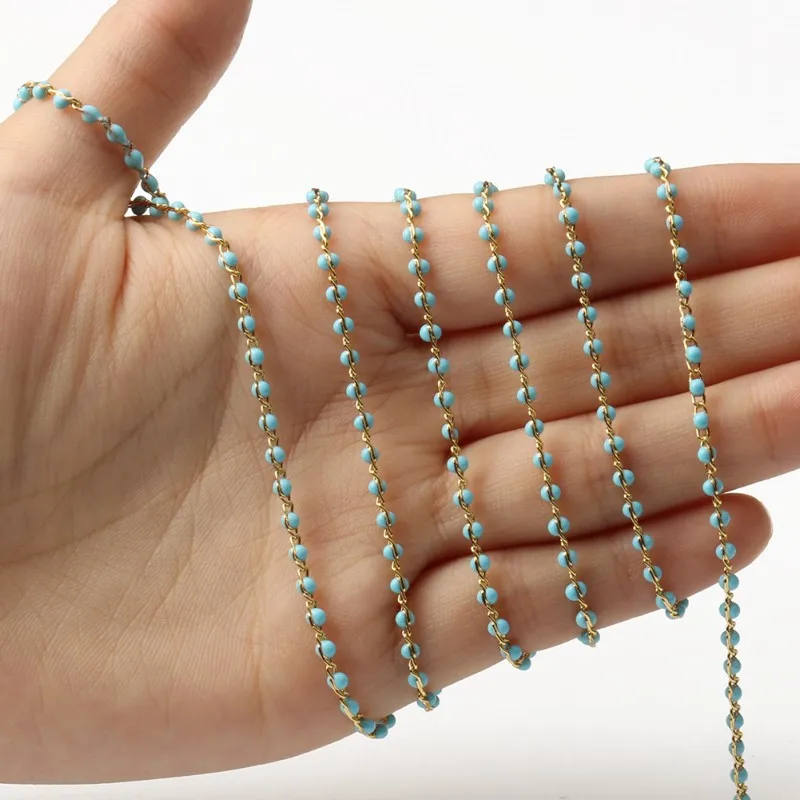 1 метровая цветная цепочка из нержавеющей стали с бусинами, модное женское ожерелье с подвеской золотого цвета, цепочка для изготовления ювелирных изделий, подарки