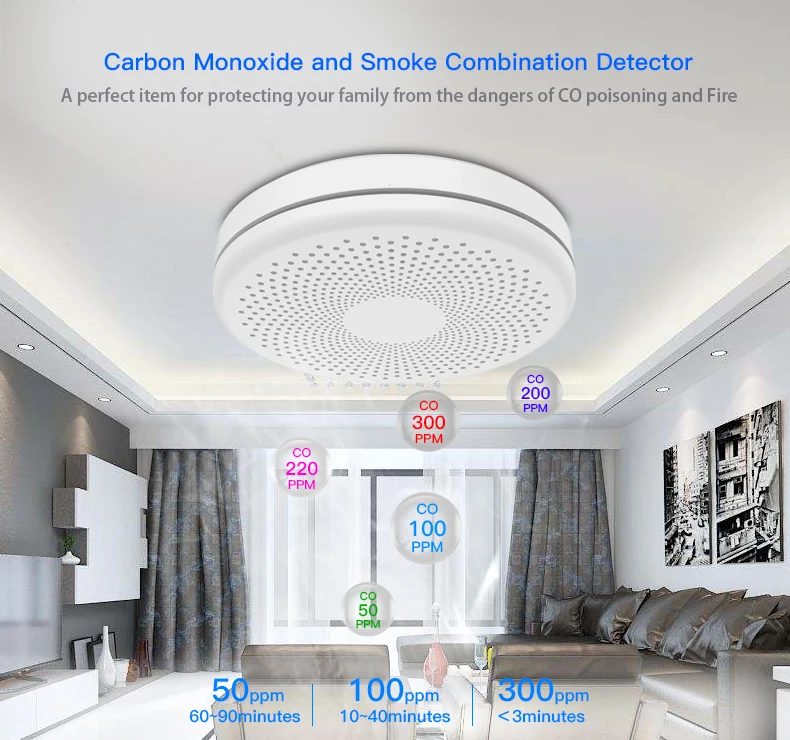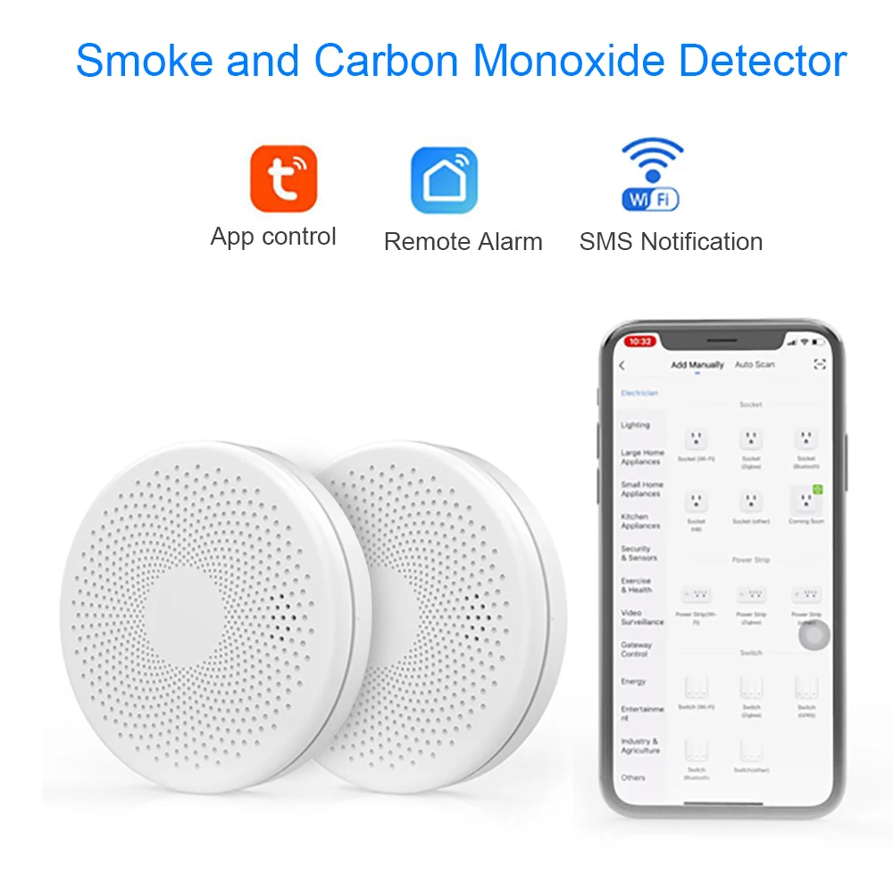 Детектор дыма и детектор угарного газа Wifi Tuya Smart на батарейках детектор дыма CO