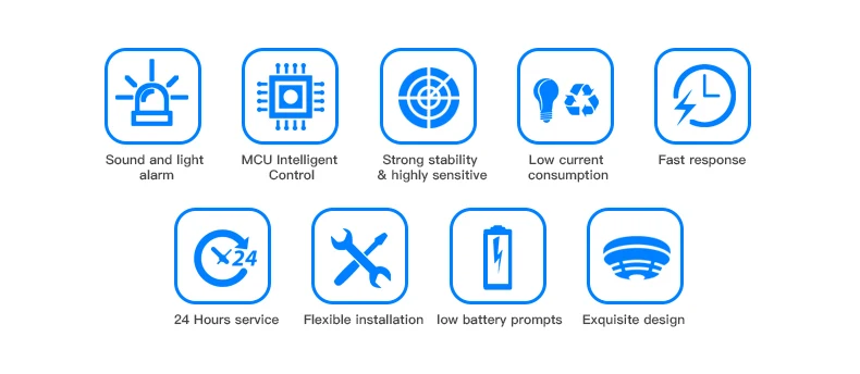 1. Материал: АБС-пластик 2. Цвет: белый 3. Датчик: Инфракрасный фотоэлектрический датчик 4. Мощность: 2*1,5 V AAreplaceablebattery 5. Стробоскопический светильник и сирена в комплекте 6. Ток покоя: <10uA 7. Ток сигнала тревоги: <30 мА 8. Звуковая сигнализация:>85 дБ/3 м 9. Рабочая температура: 0-40 °C 10. Рабочая влажность: относительная влажность 10%-95% 11. Размер: Φ120 * H31 мм 12. Соответствует TUV EN14604 13.WIFI, автономный опционально