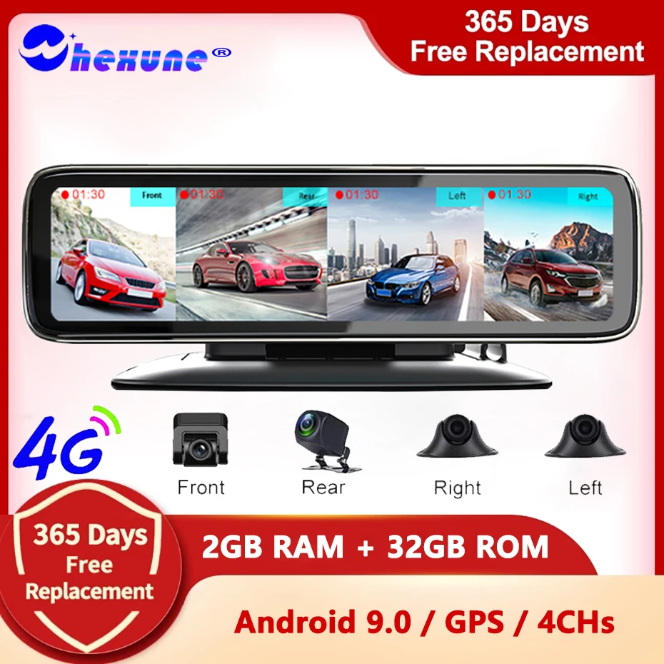 Видеорегистратор автомобильный WHEXUNE, 4 камеры 12 дюймов, 4G, Android 9,0, GPS-навигация, HD 1080P
