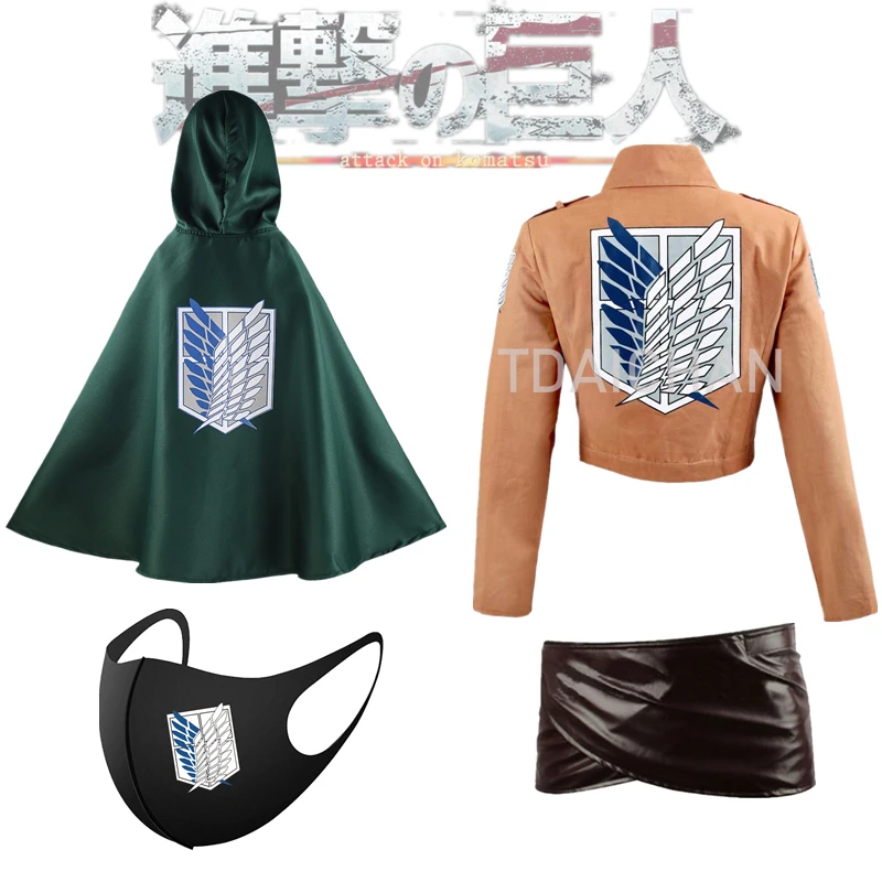 Атака на Титанов плащ куртка кожаная юбка маска Скаут Легион Аниме Косплей Костюм Крылья Свободы Хэллоуин 4 шт. наборы Новинка 2021