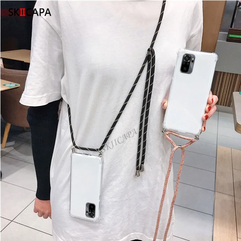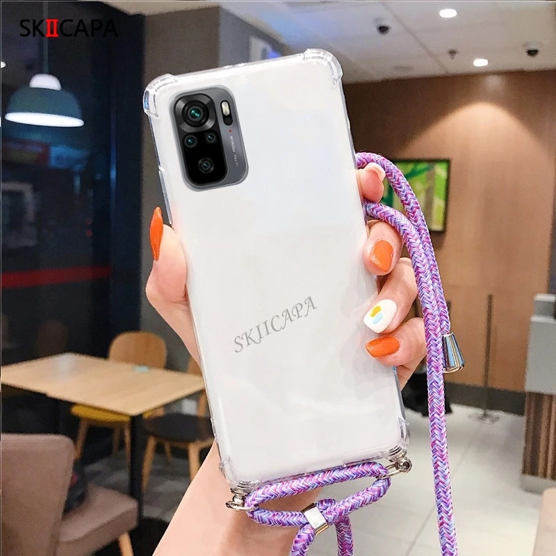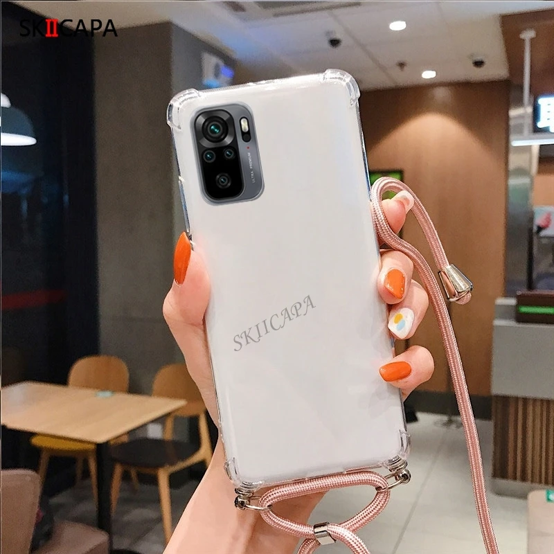 Защитный чехол для Redmi Note 10 Pro Max 9S 10X 9T 9A 9C 4G 5G Мягкий Силиконовый противоударный Прозрачный чехол для телефона чехол с ремешком через плечо