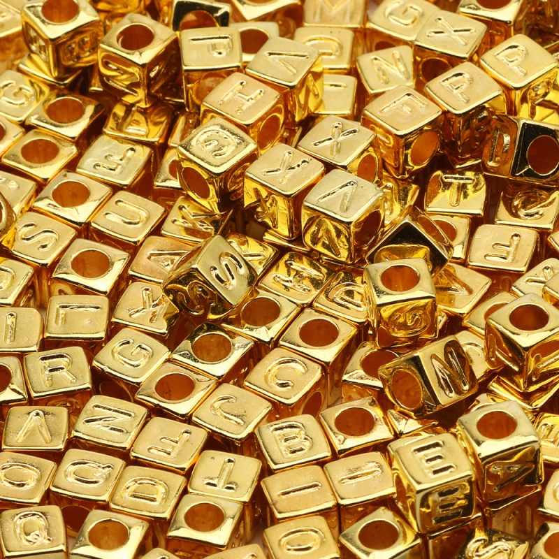 Смешанные золотые посеребренные буквы акриловые бусины Цифровой алфавит Сердце Бусины круглые плоские кубические бусины-спейсеры для самостоятельного изготовления ювелирных изделий браслет