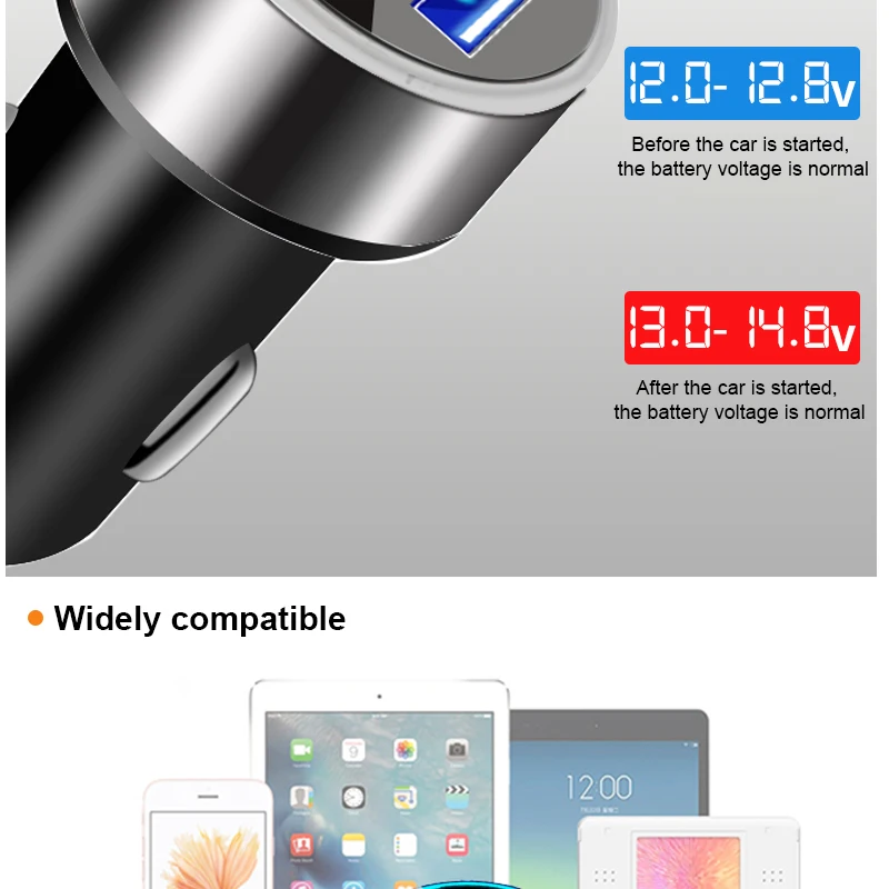 Мониторинг напряжения автомобильного аккумулятора в режиме реального времени (когда устройство не подключено для зарядки); Отображение тока зарядки при зарядке телефона