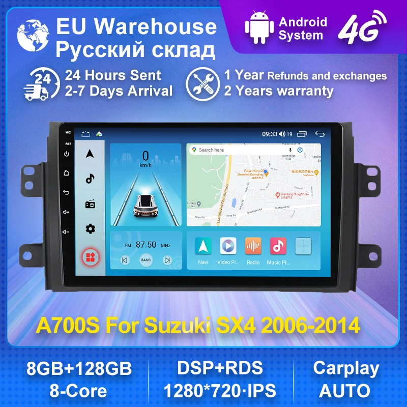 Автомагнитола 8 ГБ + 128 ГБ Android 11, мультимедийный проигрыватель для Suzuki SX4 2006-2014, навигация IPS 1280*720, 8-ядерный Автомобильный Вентилятор GPS RDS