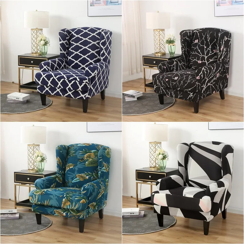 Геометрический Wingback чехол для кресла стрейч спандекс крыло чехлы для стульев Современный Цветочный Эластичный король личном кабинете чехлы на стулья