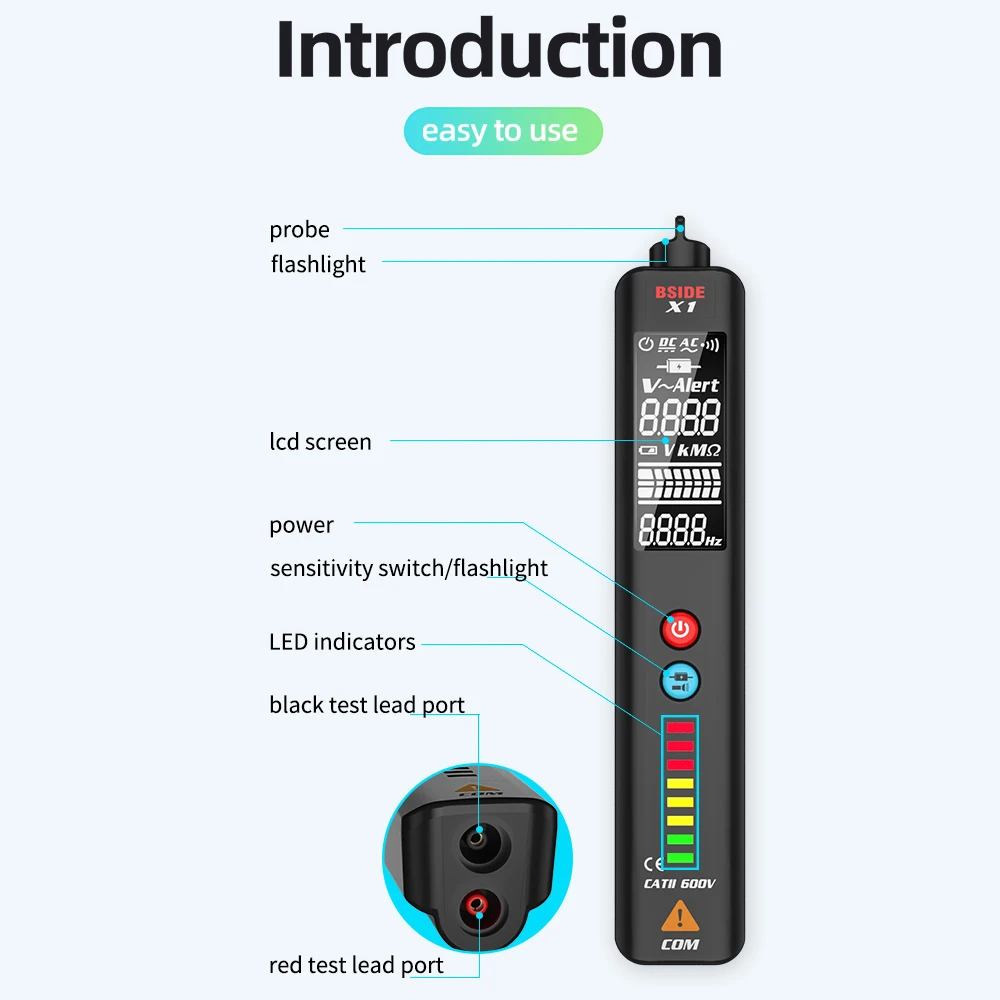 BSIDE X1 двойной режим смарт переменного тока Напряжение детектор бесконтактная проверка напряжения переменного мультиметр электрический Тесты карандаш ручка со звуком и светильник сигнализация мигающая LED светильник