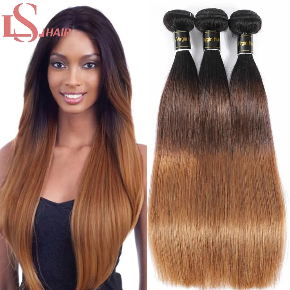 Пряди волос LS, перуанские прямые, с эффектом омбре, 1B430, 134 пучков, 8-26 дюймов, пучки волос Реми, наращивание
